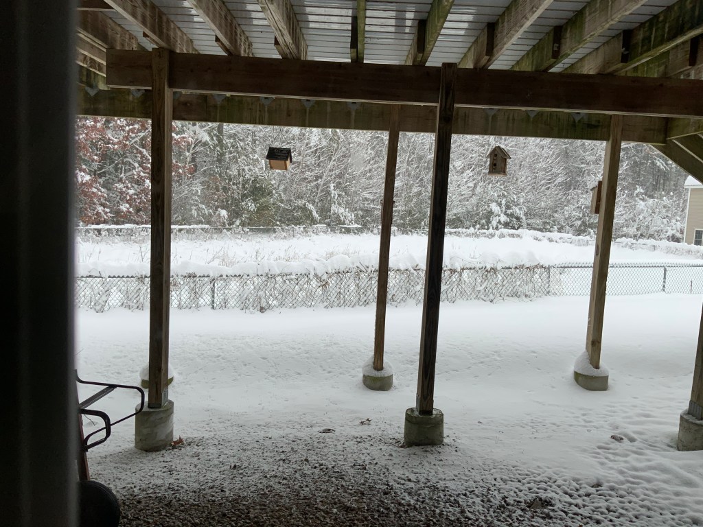 We get a lot of deer, an occasional coyote or raccoon, geese and ducks (as there are lakes and ponds in our neighborhood), lots of squirrels.. Sometimes we have heron. Enjoy the snow. We are warming up this week, so our snow will soon be gone.