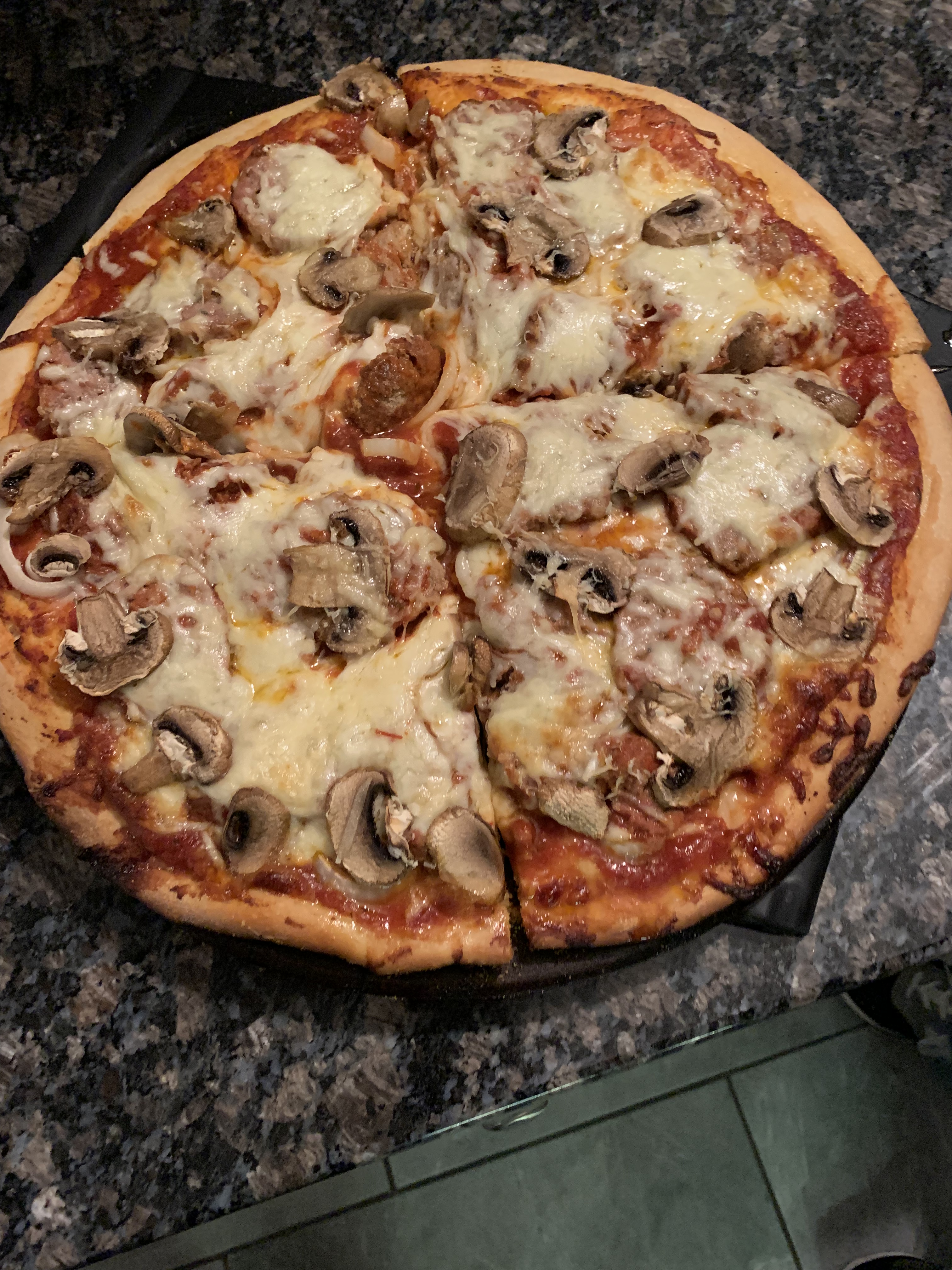 Have you ever noticed when you say PIZZA everyone listens? Haha! My husband loves to make his own pizza dough and cover it with all our favorite toppings. I always share each pizza he creates online at Instagram. People love it!