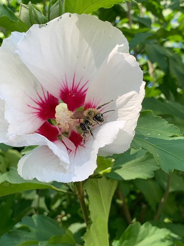 I stepped out into my yard recently and nearly was bombarded by many bees as they flew in and around the bushes. I had to step back a little to get out of their way. I know they were not interested in me but I was a little anxious just the same. I managed to snap some photos of bees inside the flowers. It was incredible. See for yourself below!