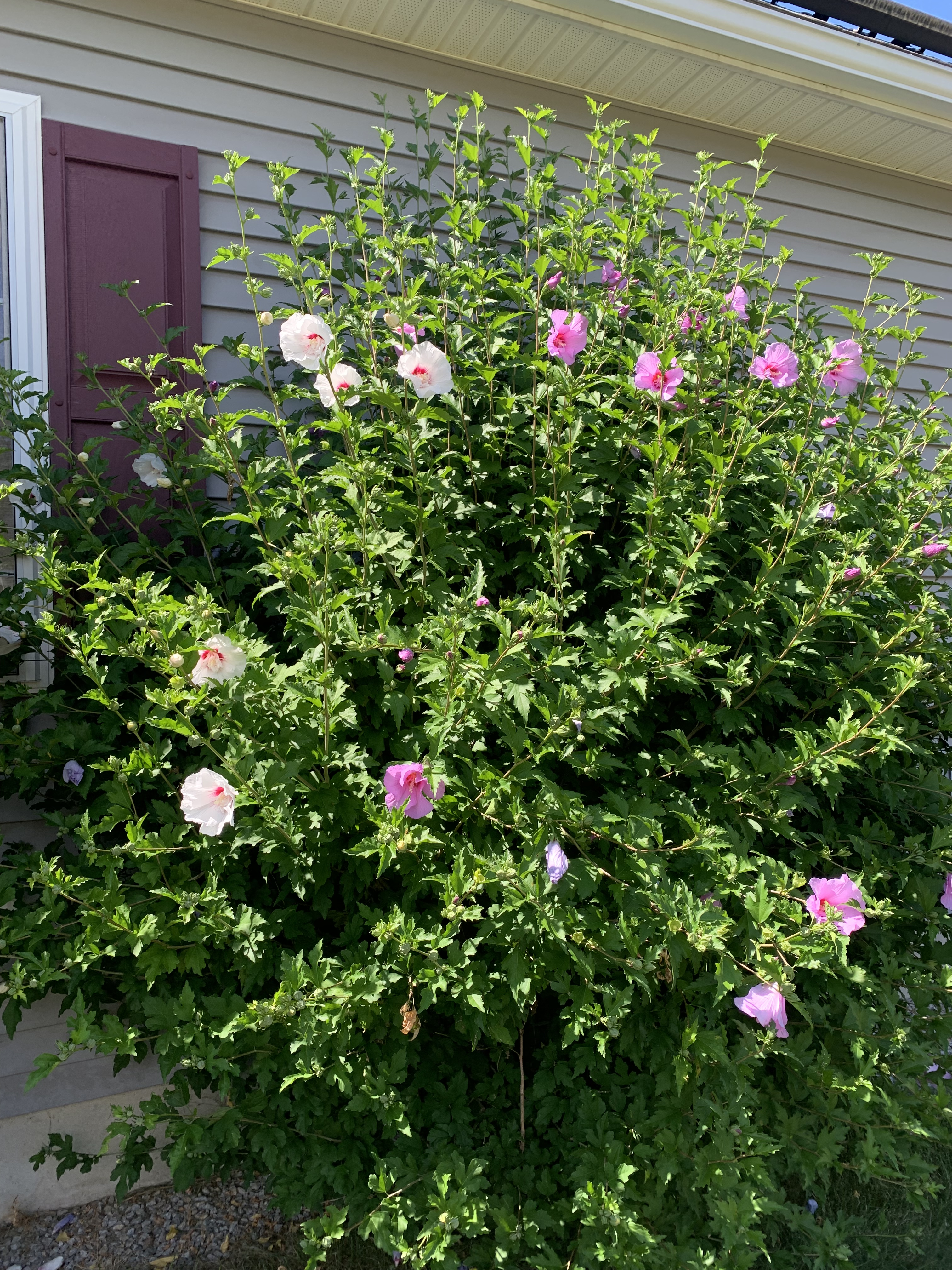 With 17 Rose of Sharon bushes around our yard it is quite beautiful to see. I wanted to share more of them with you as they continue to bloom. They lift my spirits and warm my heart each day I look at them and see more flowers popping out.