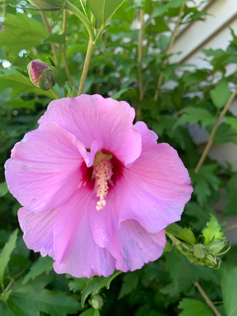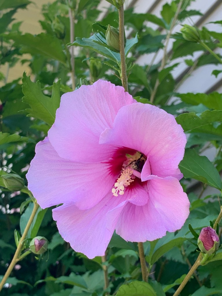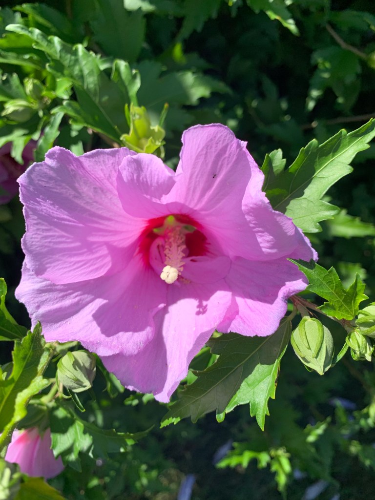I look forward each year to the blooming of our 17 Rose of Sharon bushes all around our house. They are absolutely the most beautiful sight each year. Many of our neighbors walk by to gaze at them especially when they are in full bloom. They are getting there with their blossoms.