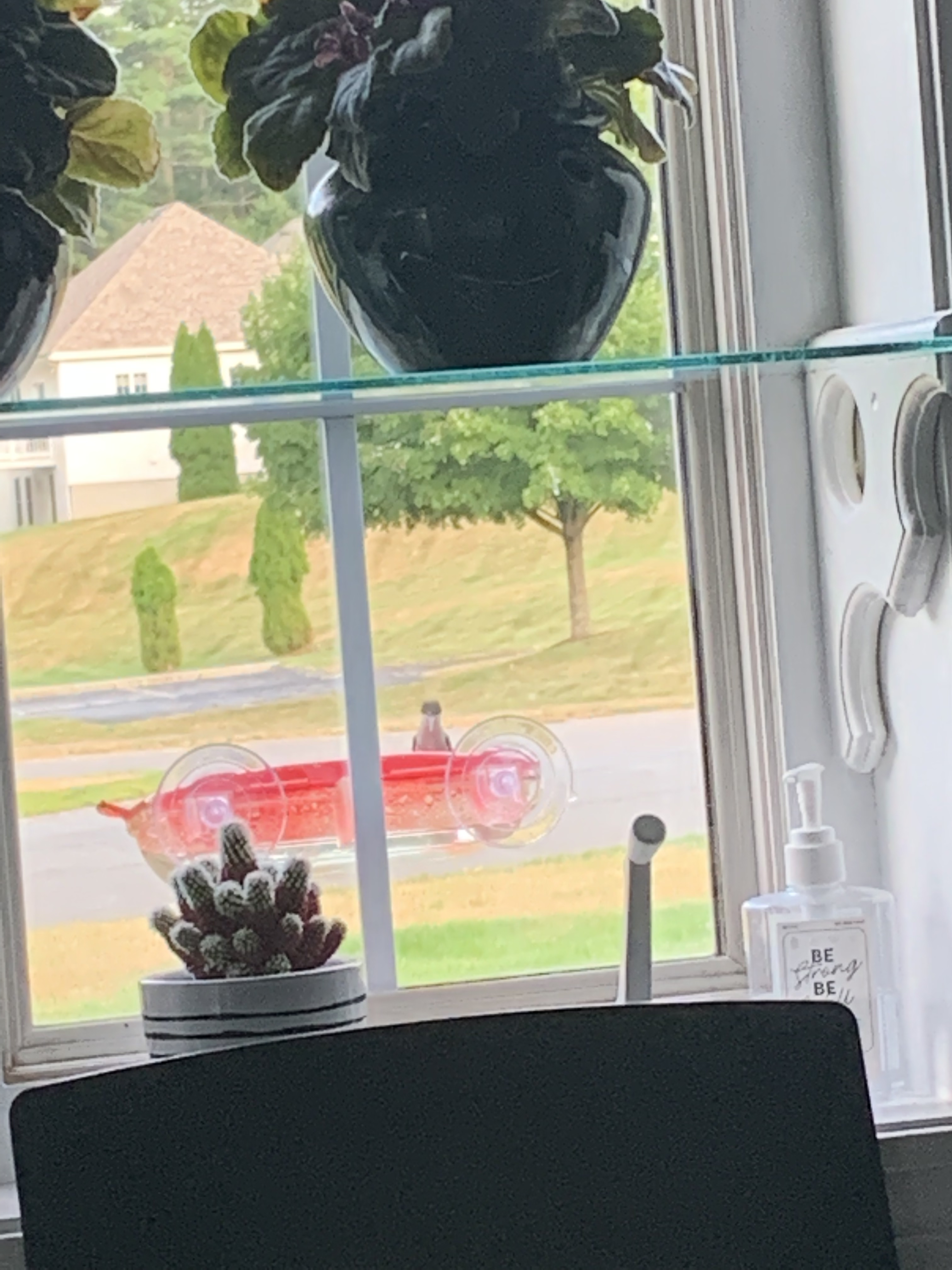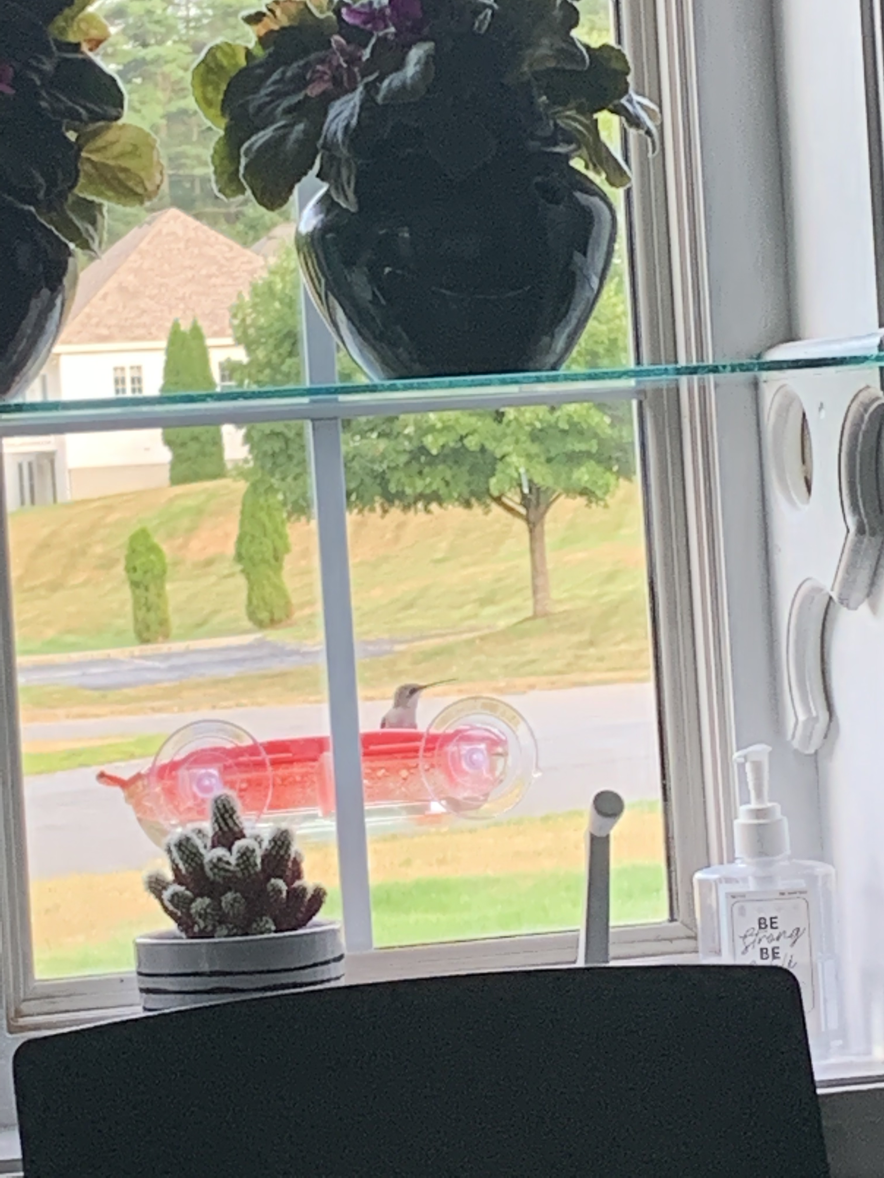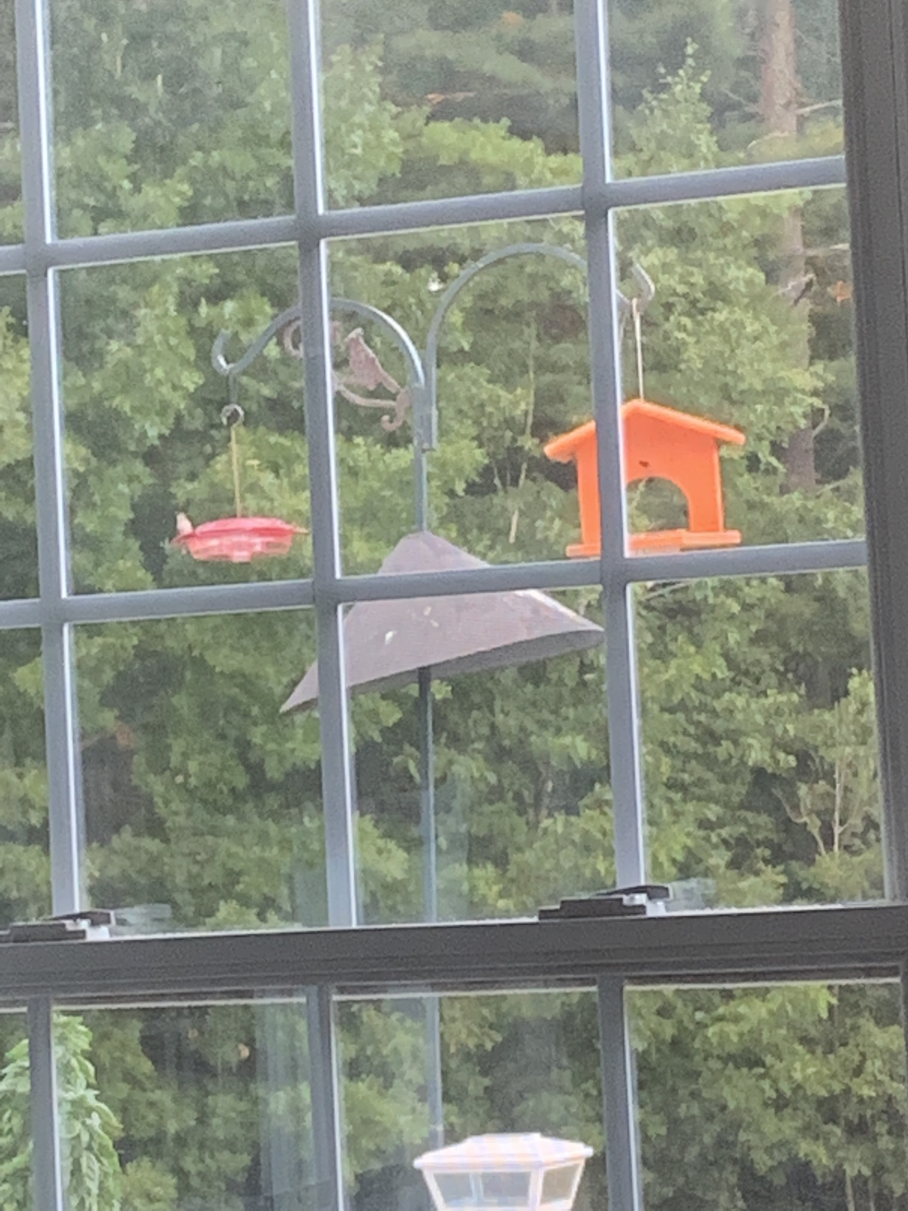 I’ve been watching the birds especially the hummingbirds. They are frantically feeding at all of our four feeders. Sometimes they are fighting to get to the feeders first. I think they too are feeling the oppressive heat of this summer. They usually stay until the end of August but this year they appear to be readying to leave sooner. Sigh!