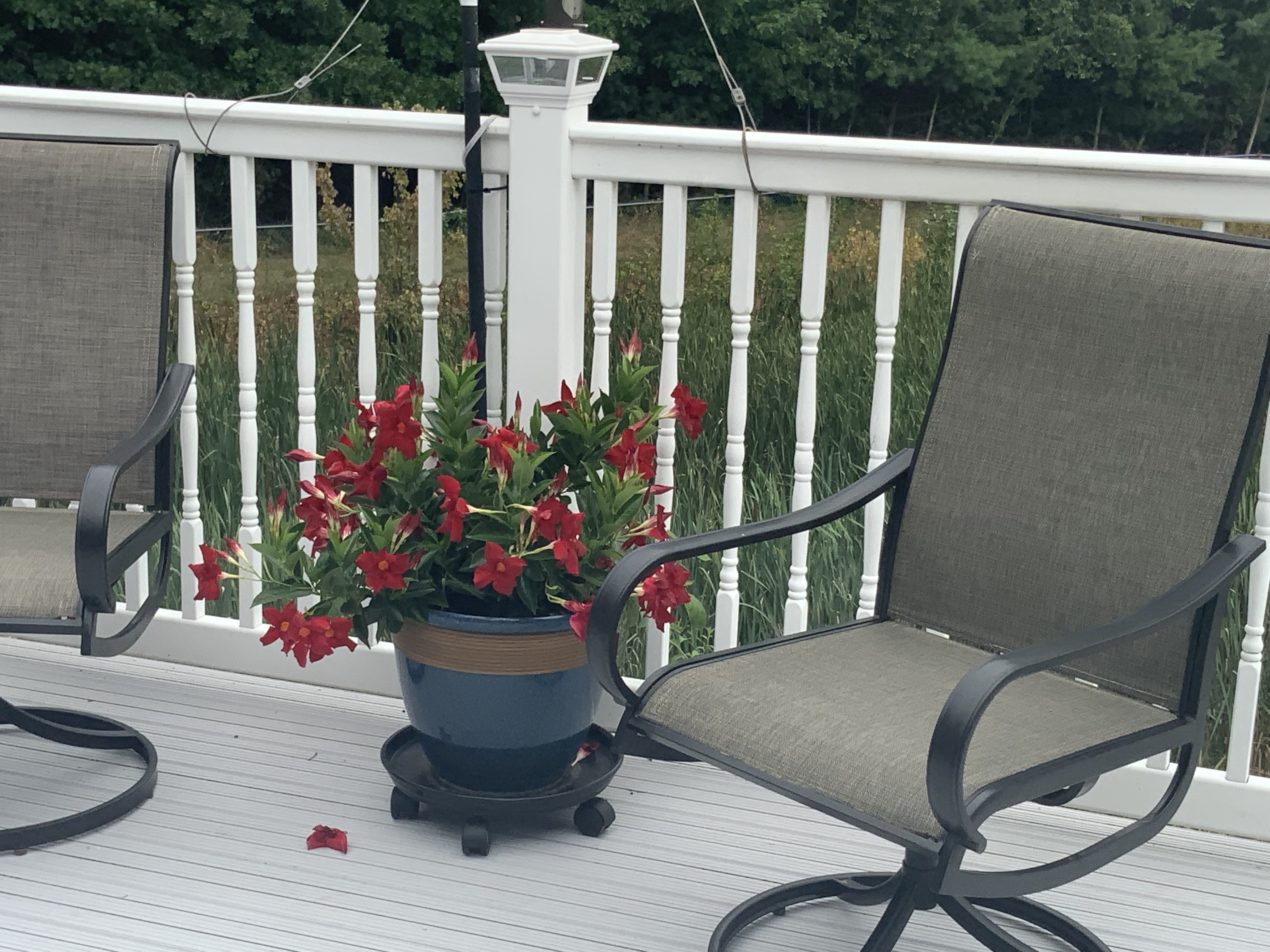 Some of our flowers like the hibiscus above are tropical plants and love the heat. They flourish in it. I guess I am not tropical because I melt. Even though I love Aruba which is a desert island with a tropical flair. The water is what keeps me cool in the high 80’s there.
