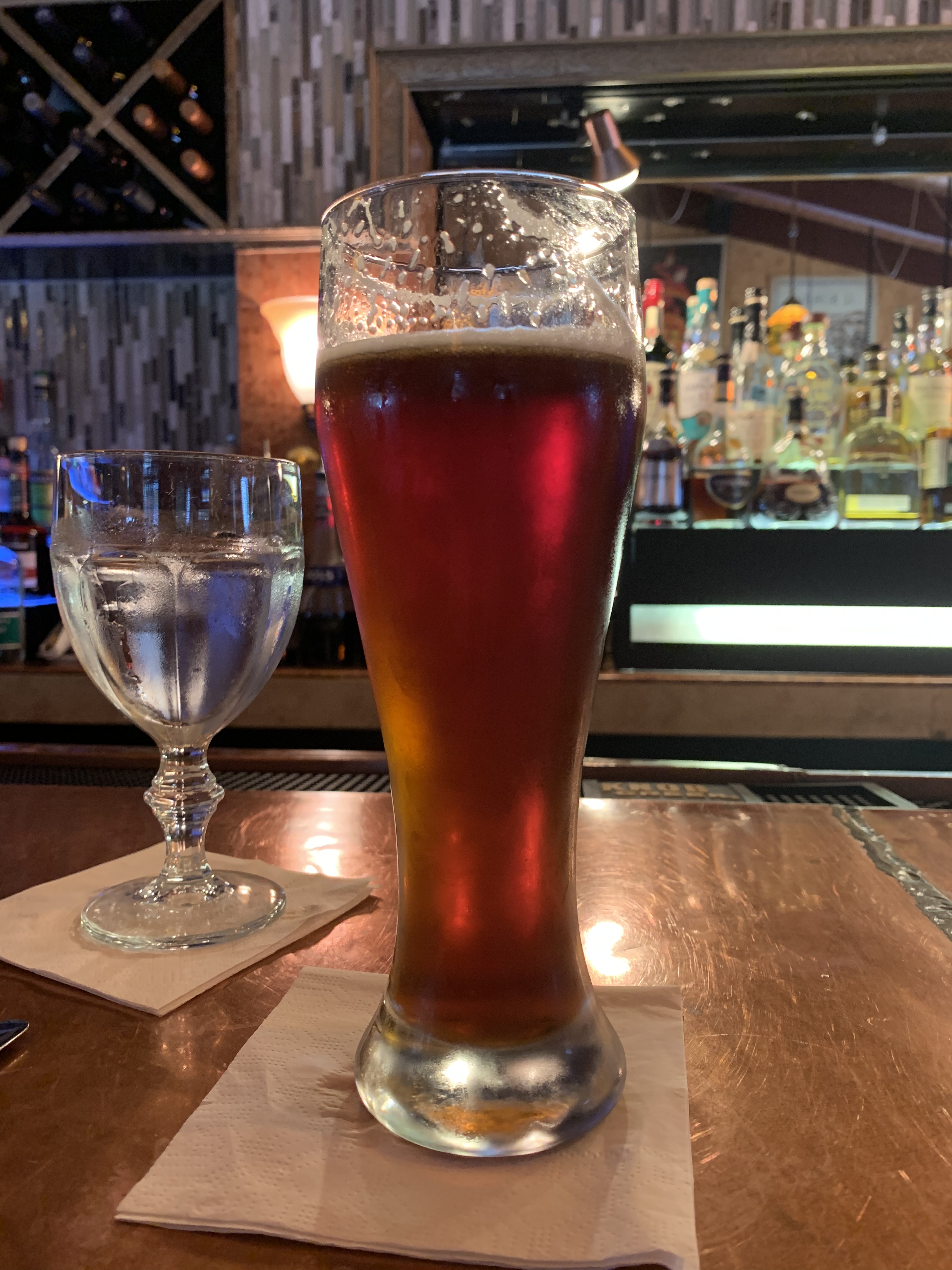 We walked from the unsightly motel to the shopping and dining area about a mile away. We dined at a lovely little Italian restaurant Vito Marcelli’s. I had one of my favorites – Chicken Parm (without the mozzarella) and penne. I usually prefer fettuccine but I didn’t say that so the default was penne. It was good though. John had ravioli with bolognese. We had to sit at the bar which we never do. But since this place had reservations we took what we could get since we didn’t have one. The bartender was accommodating, friendly and entertaining. Did you notice the photo of the dark beer? My husband’s favorite. Who takes a photo of their beer? Evidently, my husband does! Haha!