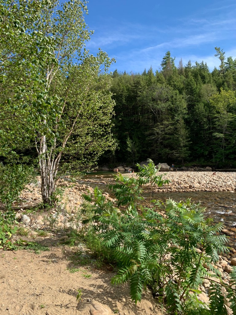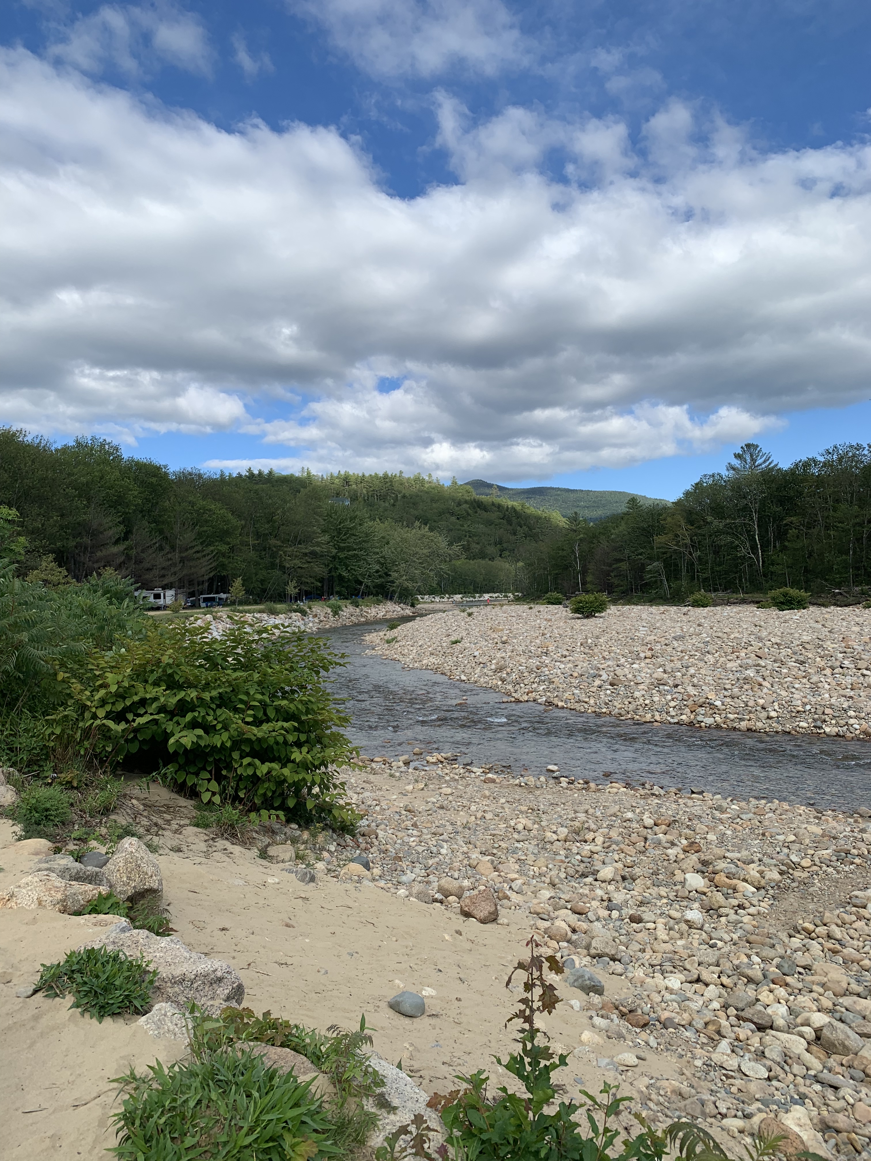 Here are some photos to share with you. Some on the way up north to Conway. The water is from the Saco River which is dangerously low. This is at a campground in Glen where we visited family who were staying there. This campground always used the Saco River to tube down into a pool. The water was so low that this was not possible even though there were some who still tried to do it.