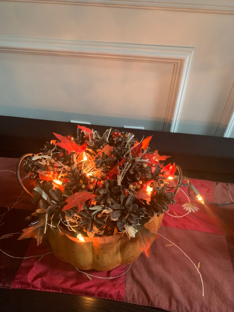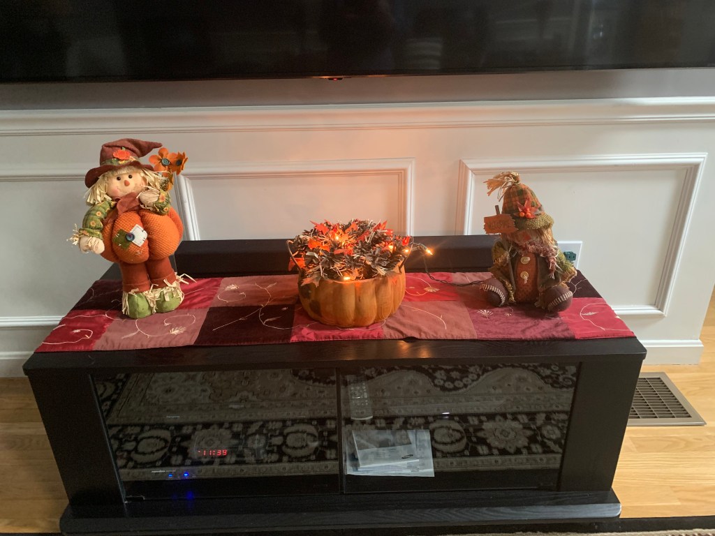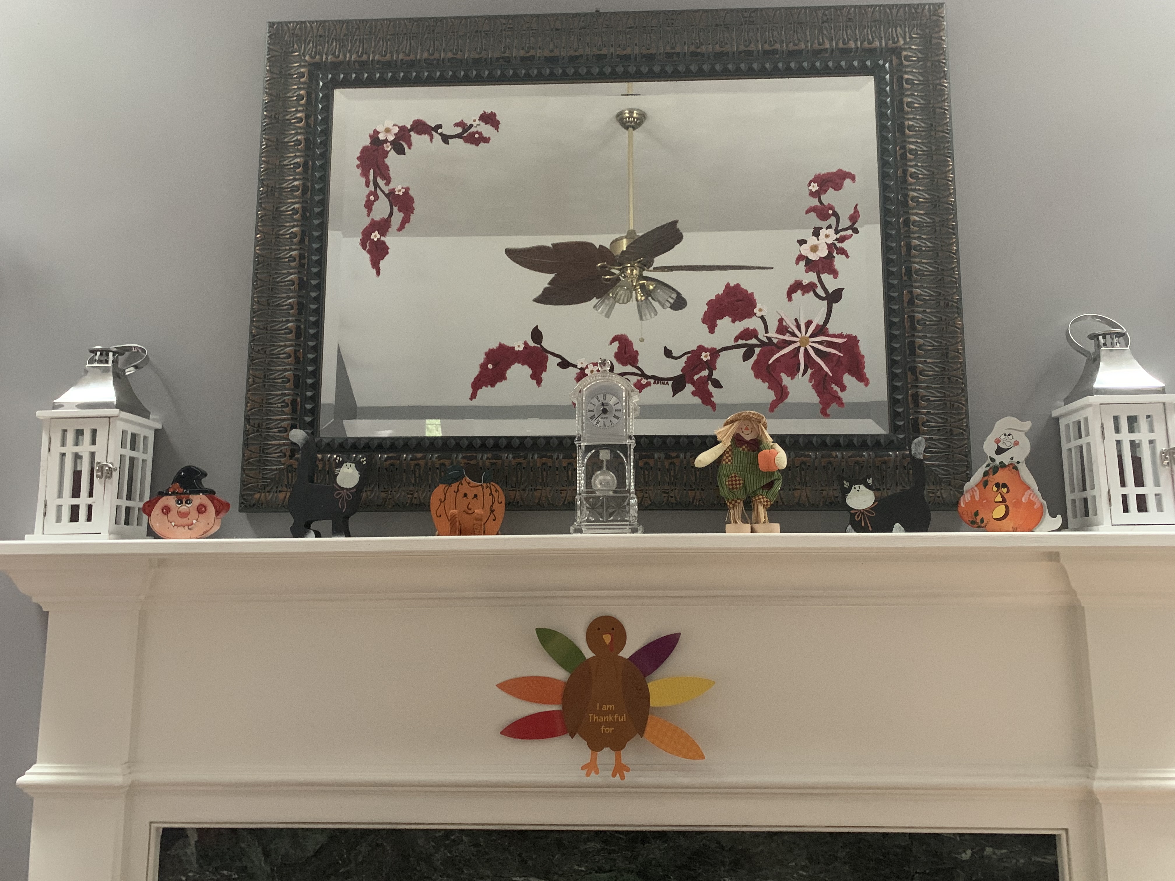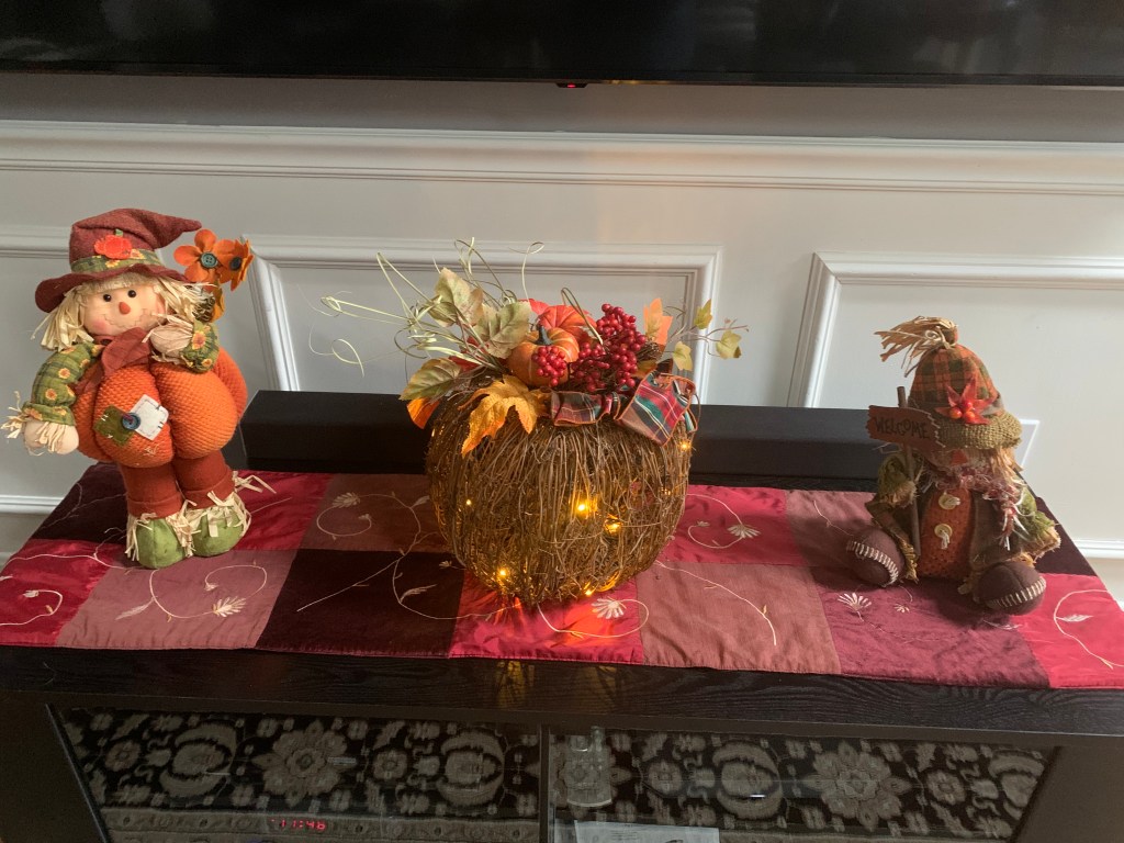 We put up our fall decorations. Here are some of them to get you in the mood for fall and the upcoming holidays. Before we know it Halloween will be at our doors, then Thanksgiving and onto Christmas. Yikes! The year is flying by!