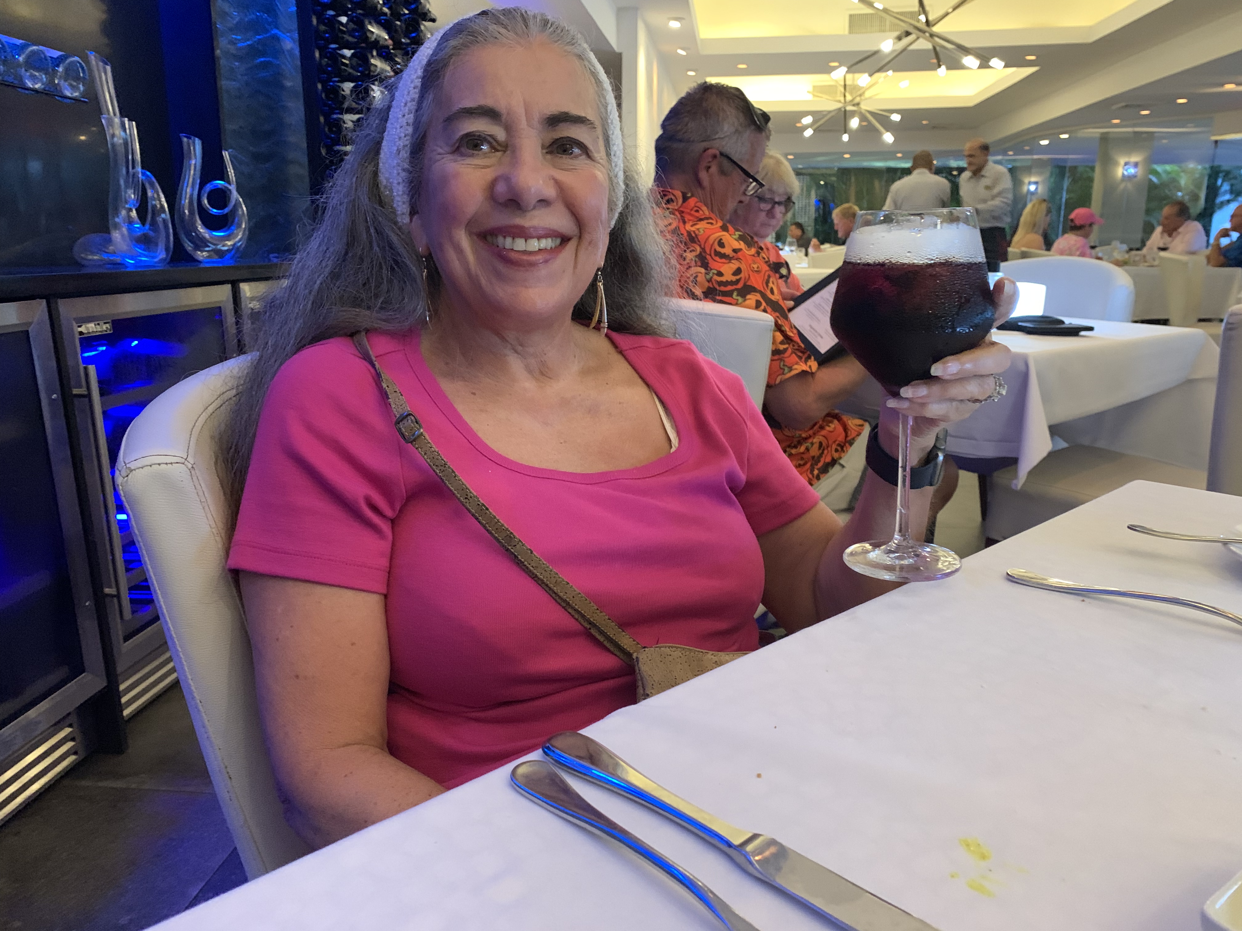 Here are some photos of the night life, restaurants, pic of me with a sangria. I had a glass at every place we dined. Some were better than others. Some of my favorite restaurants here are Driftwood, Waki Wahoo, Chalet Suisse, Madam Janette’s, Gianni’s, Amore Mio, Blossoms. There are so many restaurants to choose from. We haven’t eaten at all of them yet and there are always new ones coming every year to try. This island has the best desserts too. My favorites are flan and gelato. After all this eating I will need to cut back when I get home. We walk so much that we don’t see to gain weight and sometimes lose a little between swimming hours a day and walking in the morning and again at night. The sea air and a day on the beach gives one an appetite!
