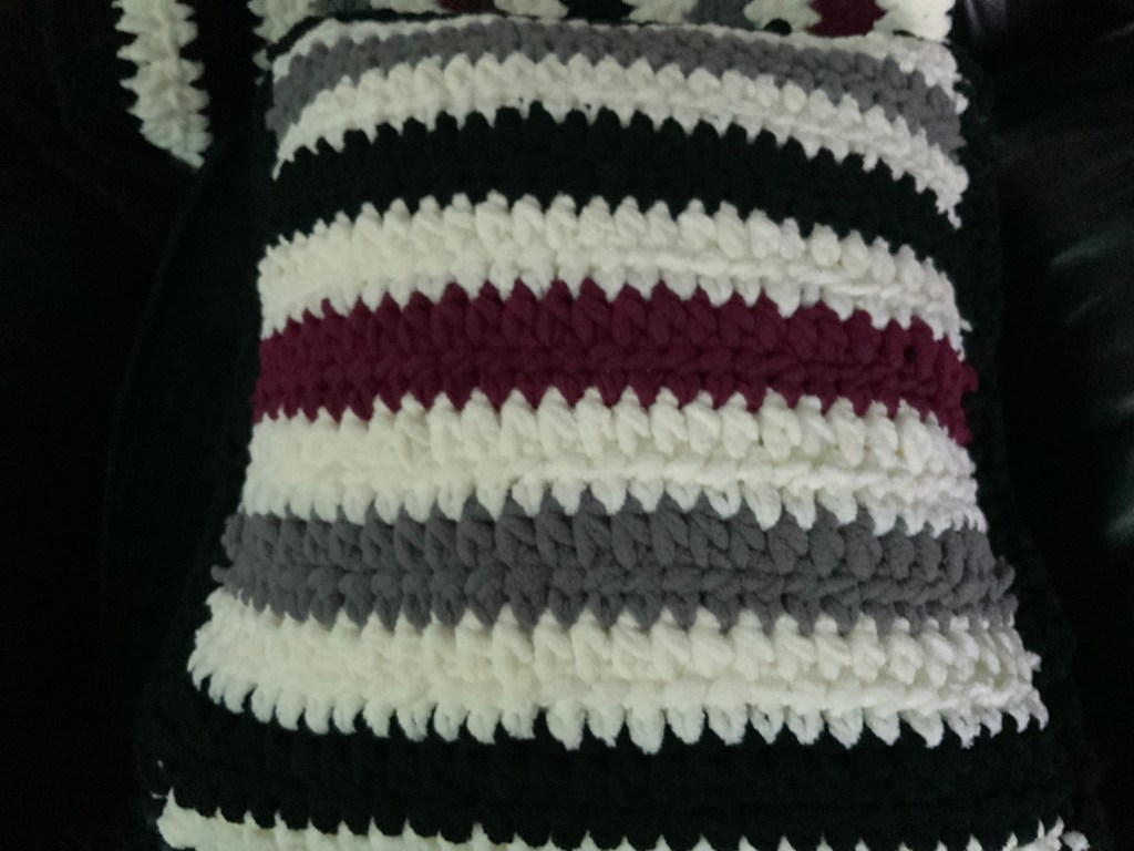 In the past I have offered pillows to my readers but haven’t received any takers. At this writing I don’t have any to offer but maybe later on I will. If you are interested in a crocheted pillow, send me a message. When I have finished my current projects and if I have any yarn left over, I will post something again with prices.