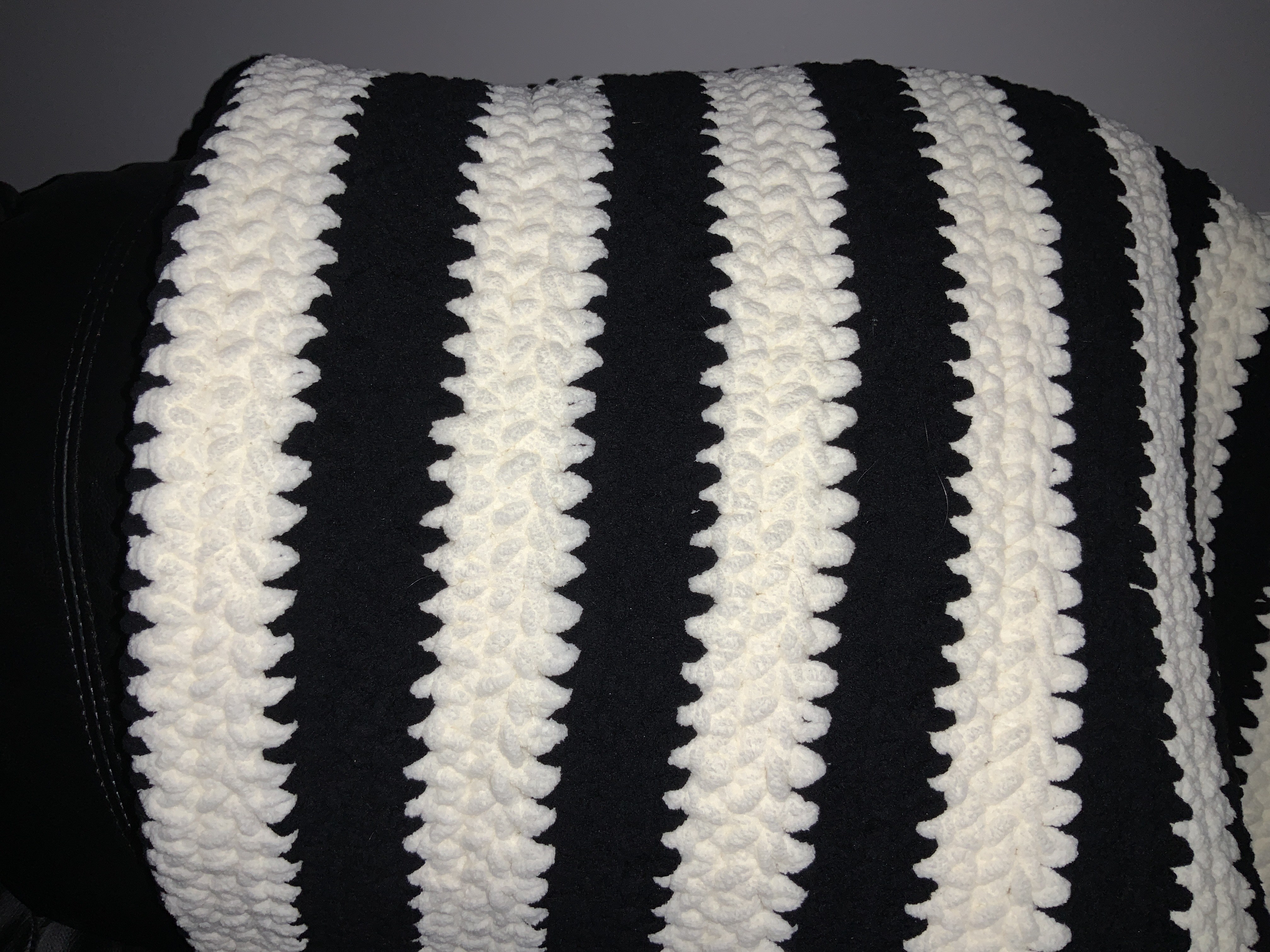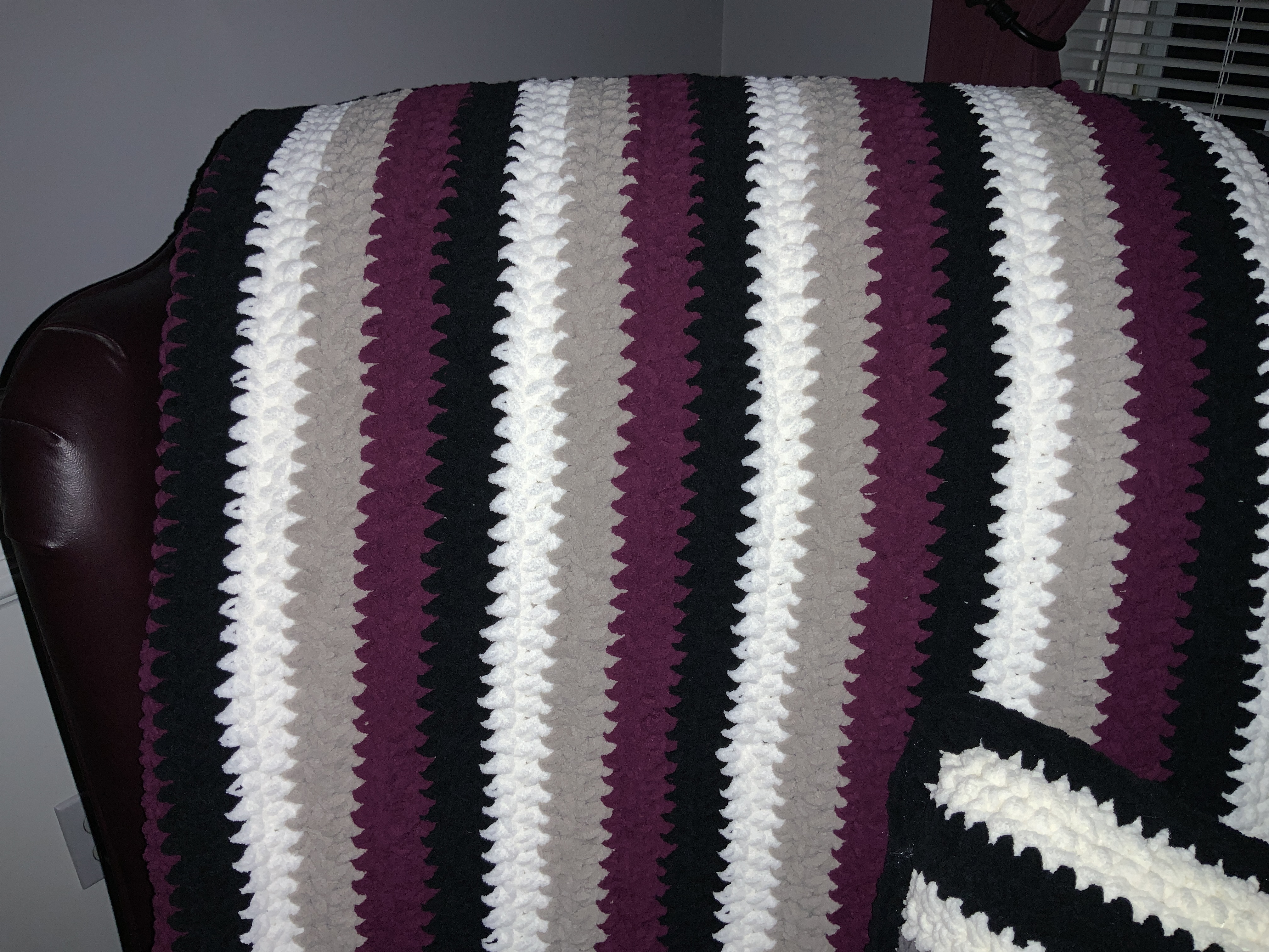 I’m slowly working on a couple of crochet projects too, one of which is a blanket. I’m fairly new to crochet though, so incredibly slow at it; I only learned how in 2021. I also do loom knitting (which I learned to do in 2022) and needle knitting (which I learned to do when I was a child, so am a lot better at than the other two). Depending on the format I’m reading in, I like to work on my projects while I’m reading (I obviously can’t for braille, since I need my hands for that). I’ll also work on them sometimes when I’m on Zoom calls (sometimes because they’re crafty Zoom calls, so we’re all working on crafts, and sometimes just because I don’t need to be doing anything with my hands while on the call, so want something to keep my hands busy).