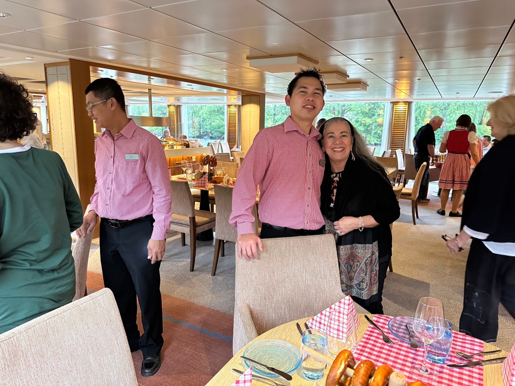 Three photos below are of our ship the Viking Ve which was longer than it was wide with a flat bottom. It was too long to get into one photo. It carried a large staff that catered to our every need. They were outstanding! I hated to say goodbye to them all but it’s back to reality and cooking, cleaning and washing clothes! Phew! We were quite spoiled.
