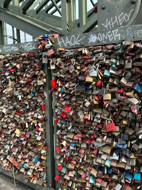Here are a few more photos of our trip that make me relax a little more. First photo – two relaxing swans in Germany, next Melk Abbey in Germany, locks and more locks in Budapest, Hungary. The locks signify love that is found and cannot be broken. The people there believe that if they put a lock there with the initials on it of their love and throw away the keys that their love will last forever. I don’t know if it works but as you can see many believe it to be true. It was impossible to count how many covered the bridge. The chains have added so much weight to the bridge that it is getting heavier by the day and in danger. They may have to remove them sometime. It was mind boggling to see. I only snapped a small portion of them too.