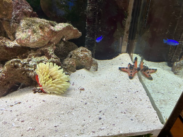 We recently purchased two additions for our saltwater fish tank – a chocolate chip starfish and a sea anemone. These two creatures are the only two safe ones to add to the tank since our fish are quite aggressive and do not accept any new fish to their domain.