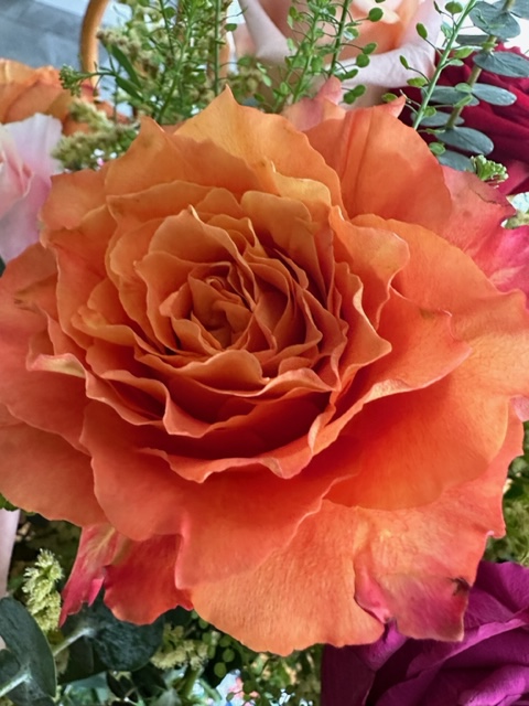 I hope these flowers will brighten your day. They certainly do that for me each time I look at them. I keep giving them water and a little food to keep them fresh! It’s working so far.