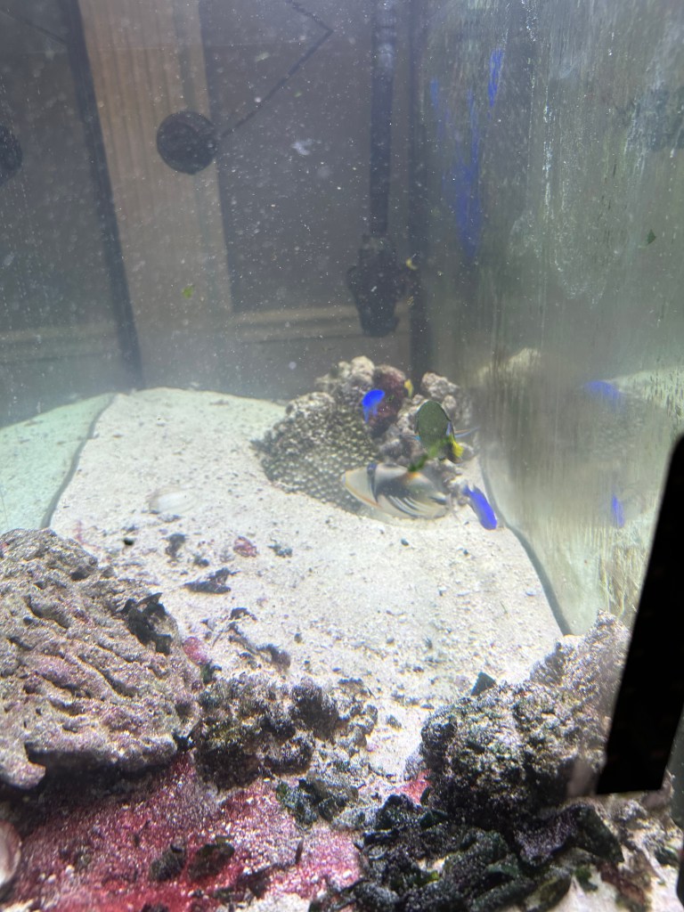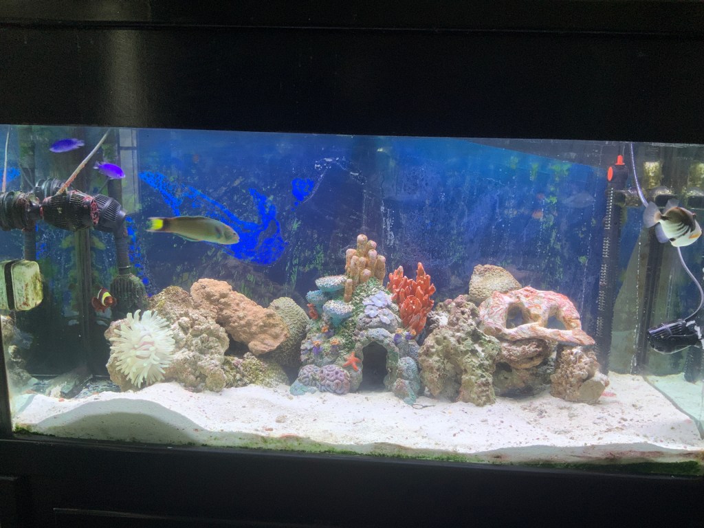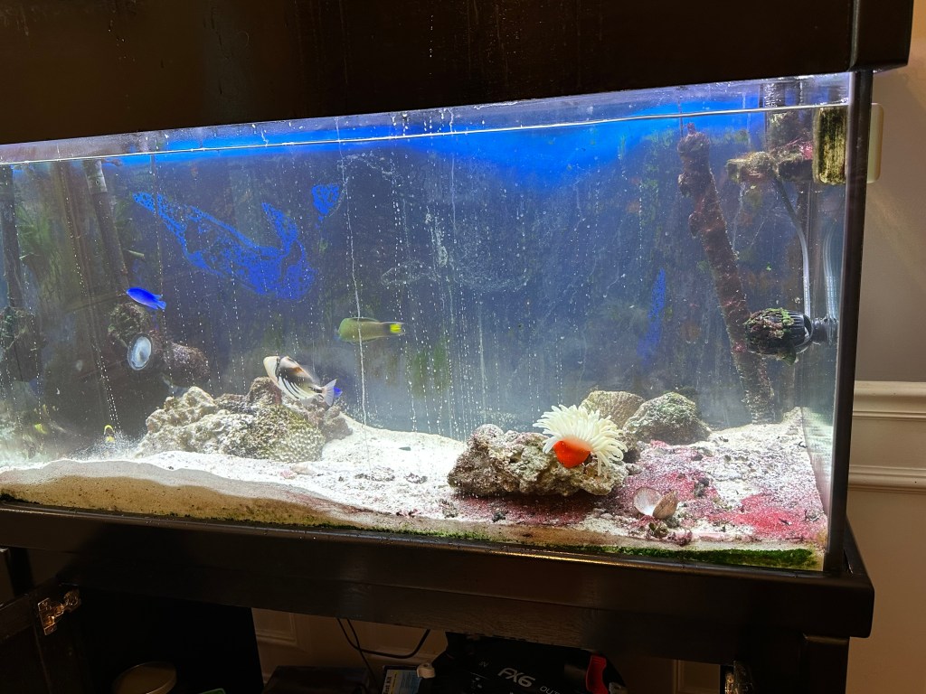 Saltwater tanks can be a lot of work but are delightful. The tank looks lovely now it’s clean.