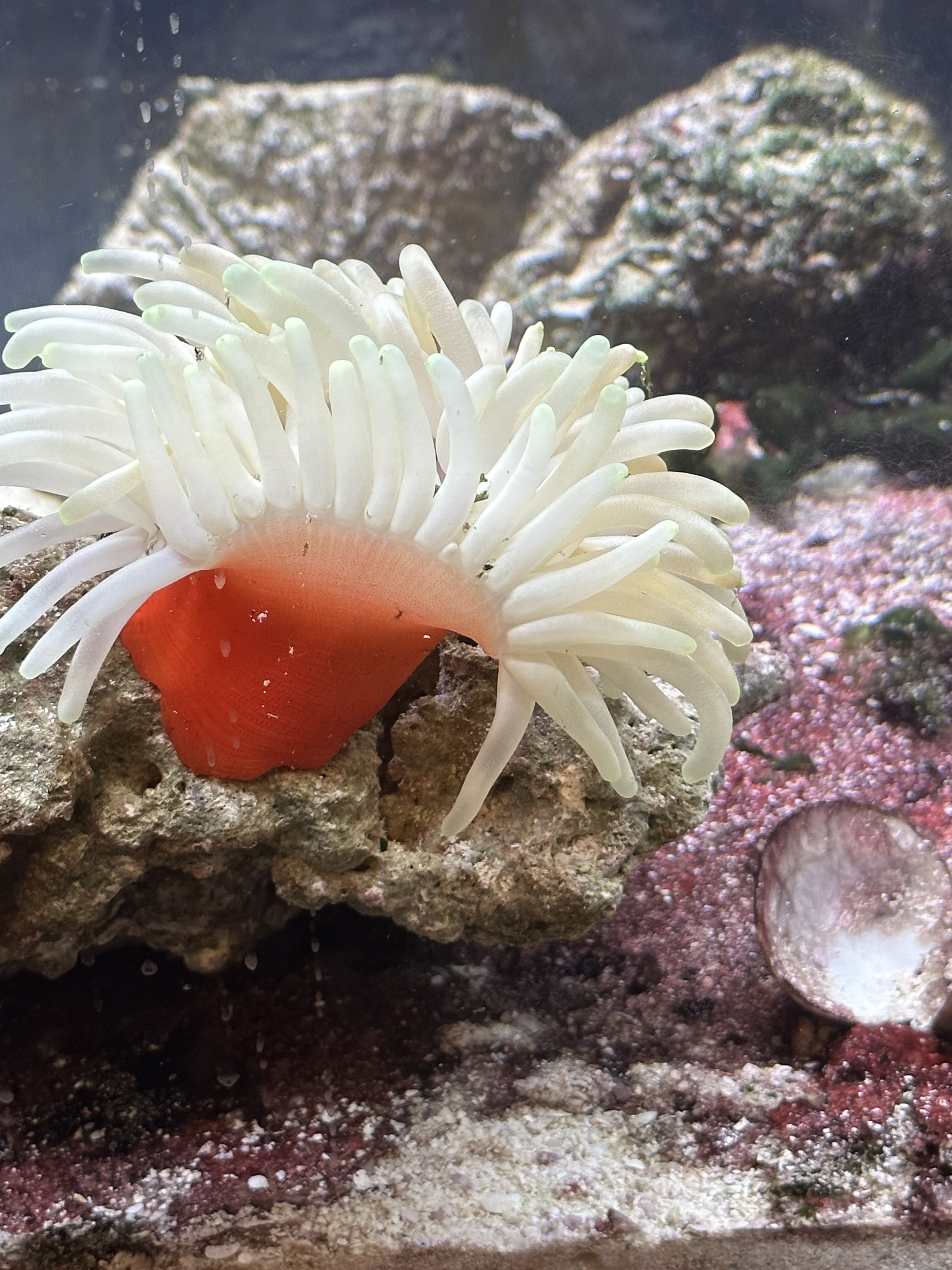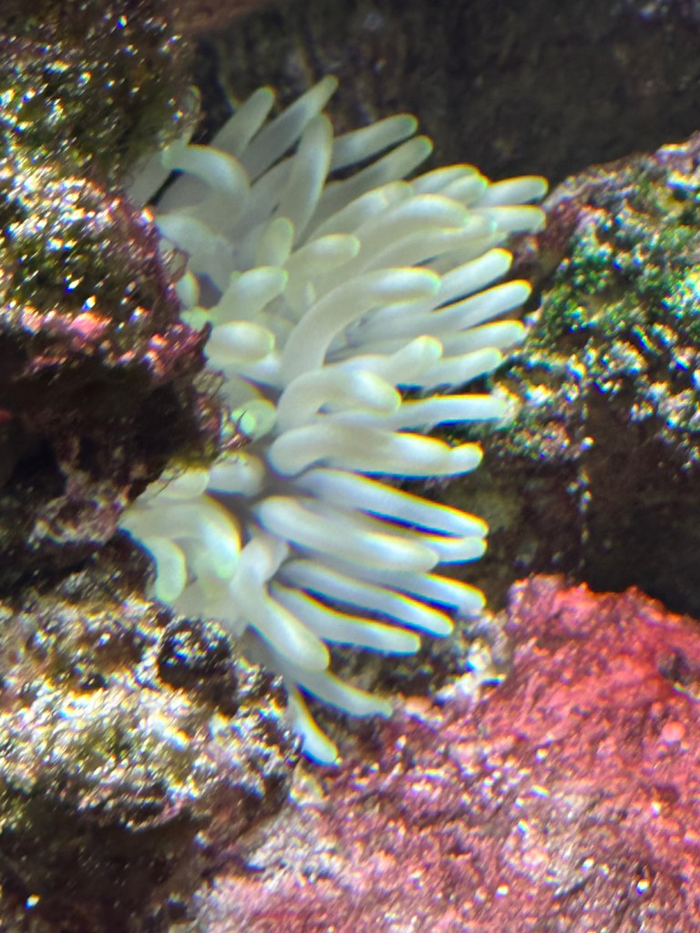 By adding this special light to the tank we caused red algae to grow profusely as you can see in the photos below. It was beautiful at first then overwhelming not only to us but to the fish who kept pushing it around to get it out of the way. The anemone though didn’t seem to mind it at all.