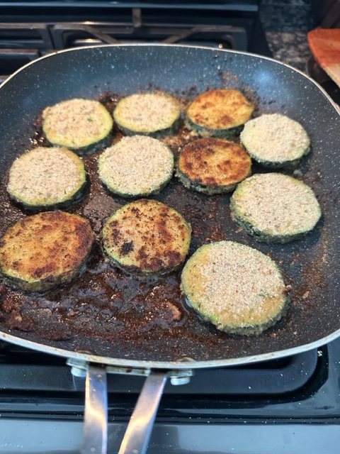 - Add more olive oil as needed to pan until all zucchini are finished.