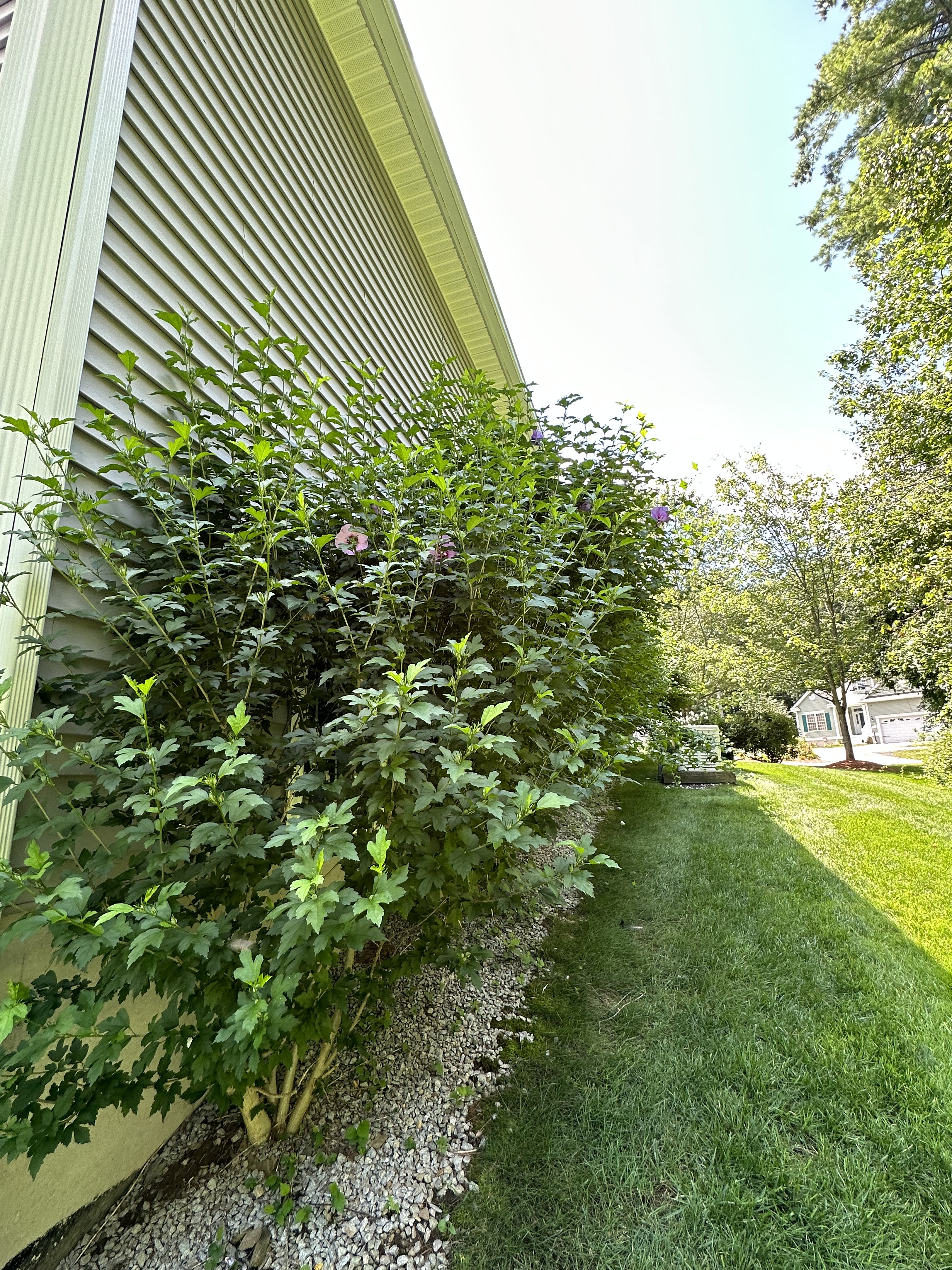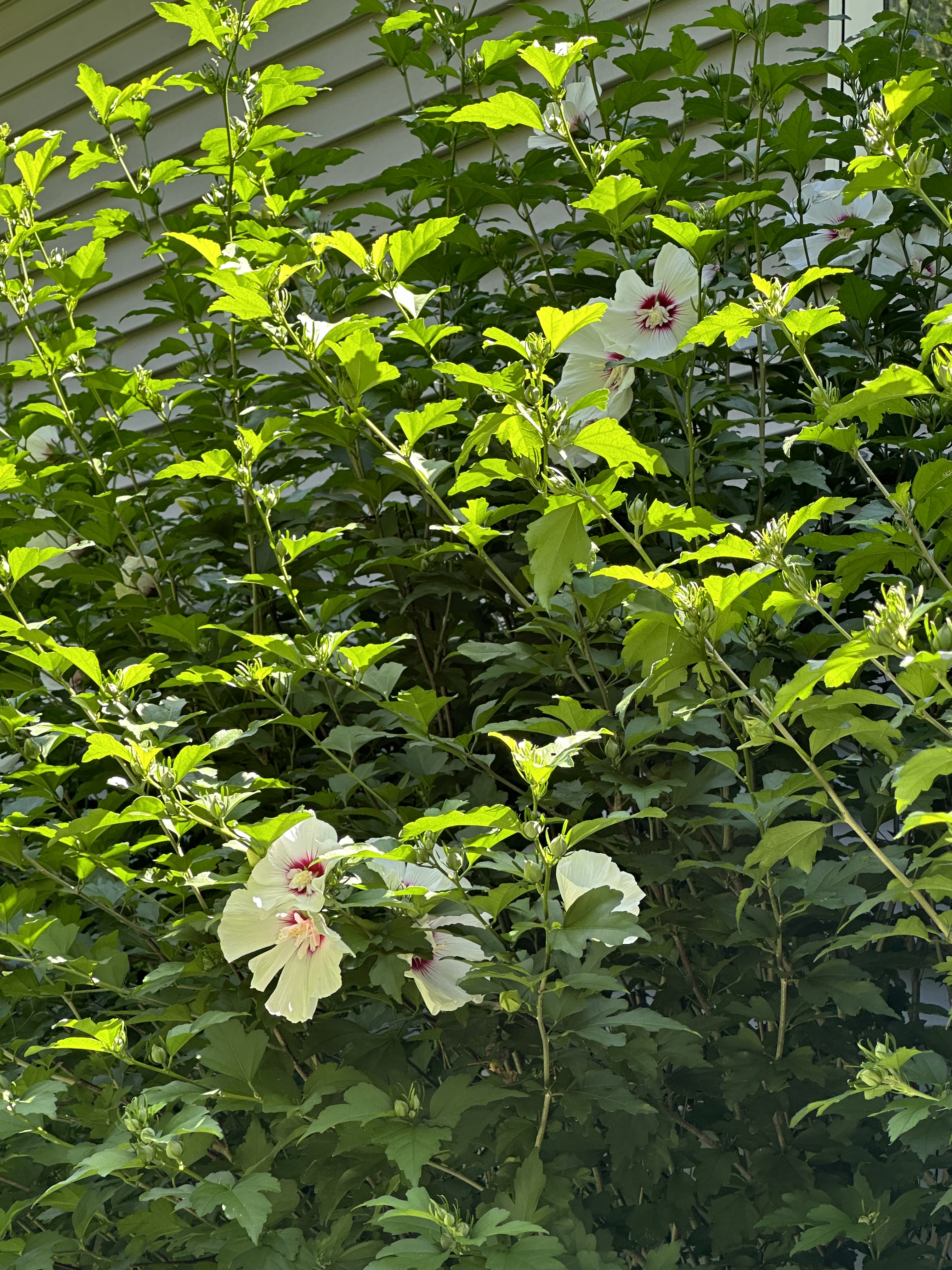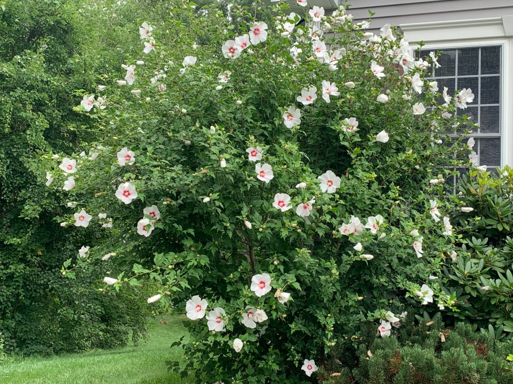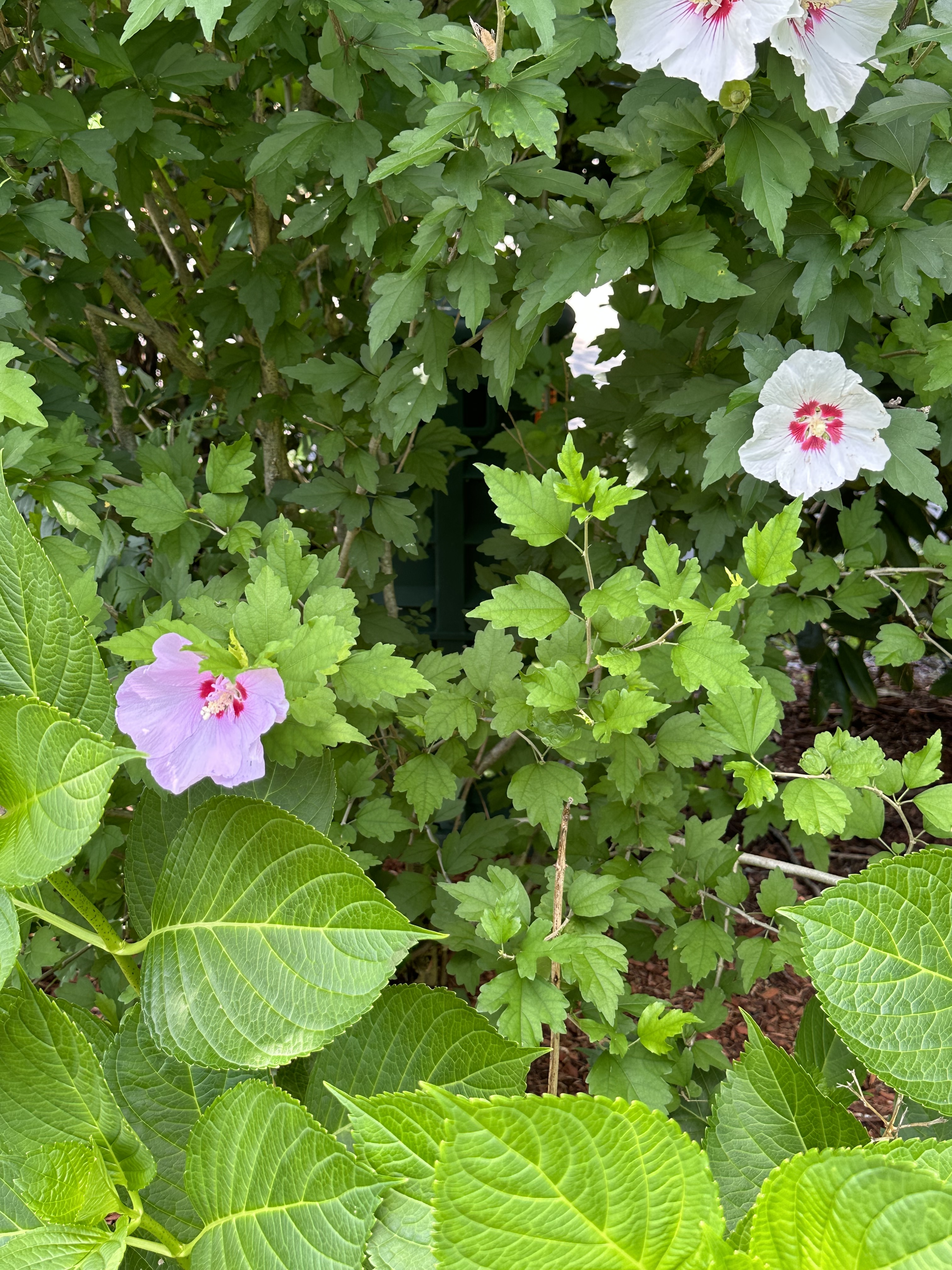 The following photos are of 2022, 2021 and 2020 Rose of Sharon bushes which were flowering profusely around the same time in these months as this year. The weather in past summers was much sunnier and not as rainy. Though our flowers need the rain they also need the sun as we do!
