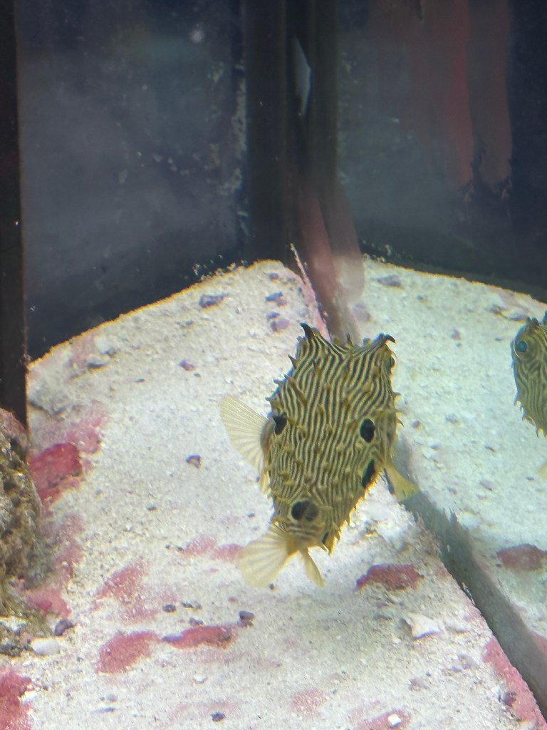 Our 195-gallon saltwater tank has another new addition. We ordered a Spiny Box Puffer (Burrfish) by mail and it came on 8/8/23. I hope by the time you see this post that he made it!