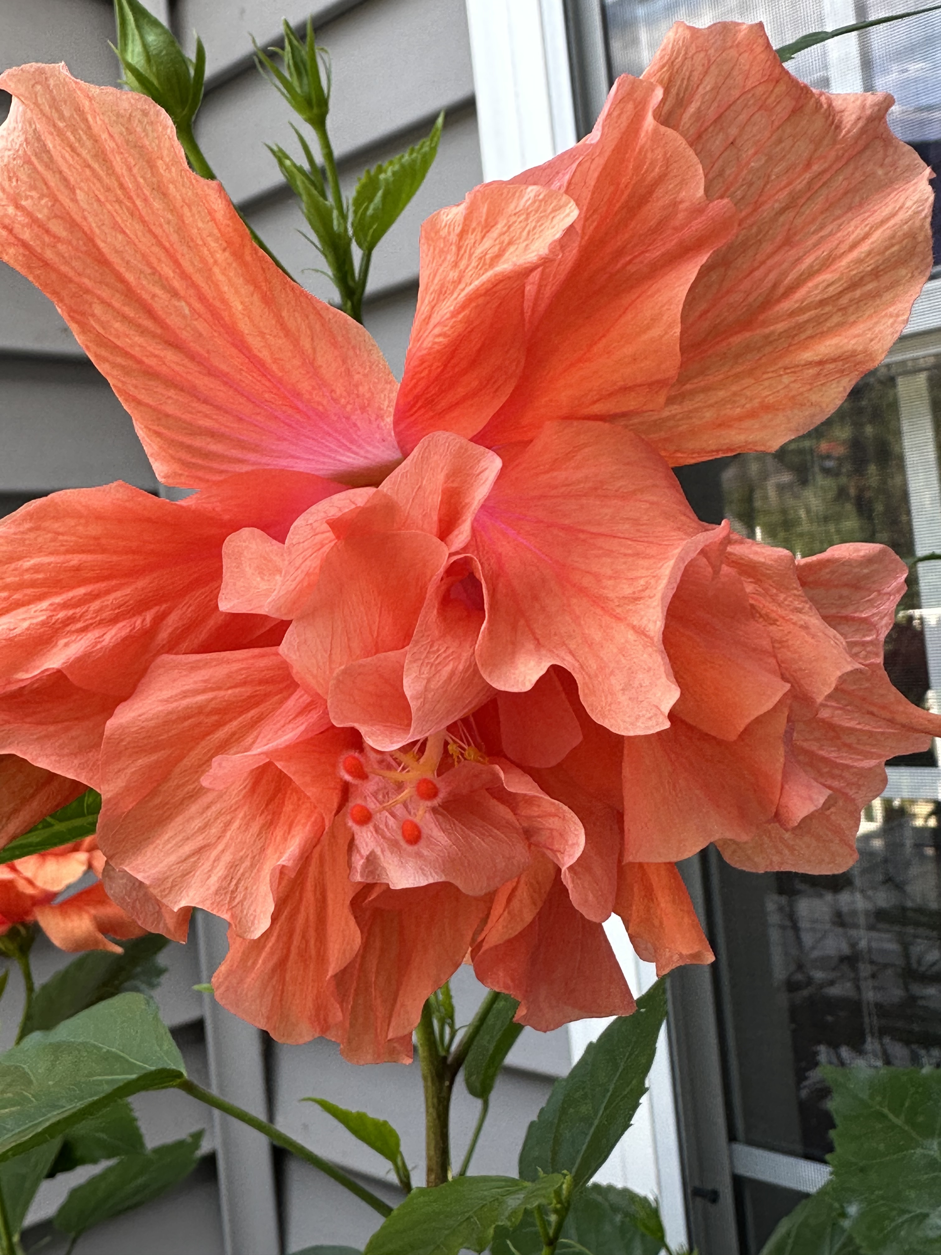 The other flowers below are from the deck – petunias, and Dipladenia, and the last three are of a hibiscus plant that is over 11 years old. Looks pretty good for an old plant, better than me!