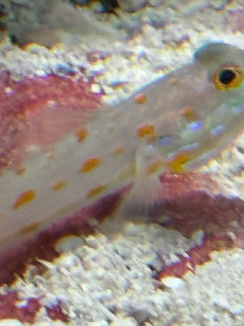 It is quite a colorful tank, full of active, vibrant and happy fish. The only two that are missing are the gobies. We have nots seen them since we dropped them in. Here are some photos of them. I think Trigger might have gotten hungry and made a snack of them.