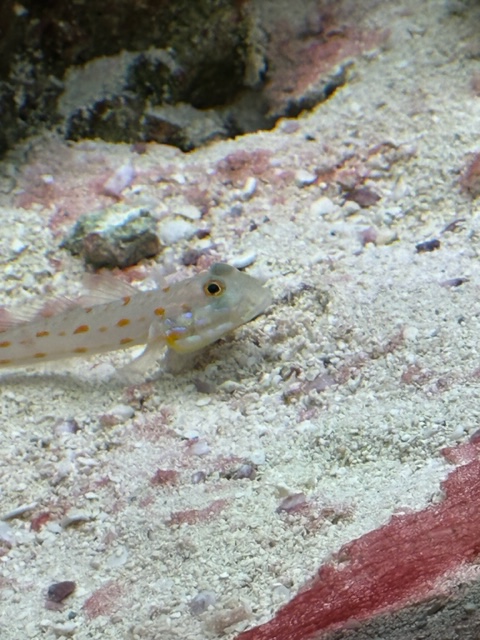 It is quite a colorful tank, full of active, vibrant and happy fish. The only two that are missing are the gobies. We have nots seen them since we dropped them in. Here are some photos of them. I think Trigger might have gotten hungry and made a snack of them.