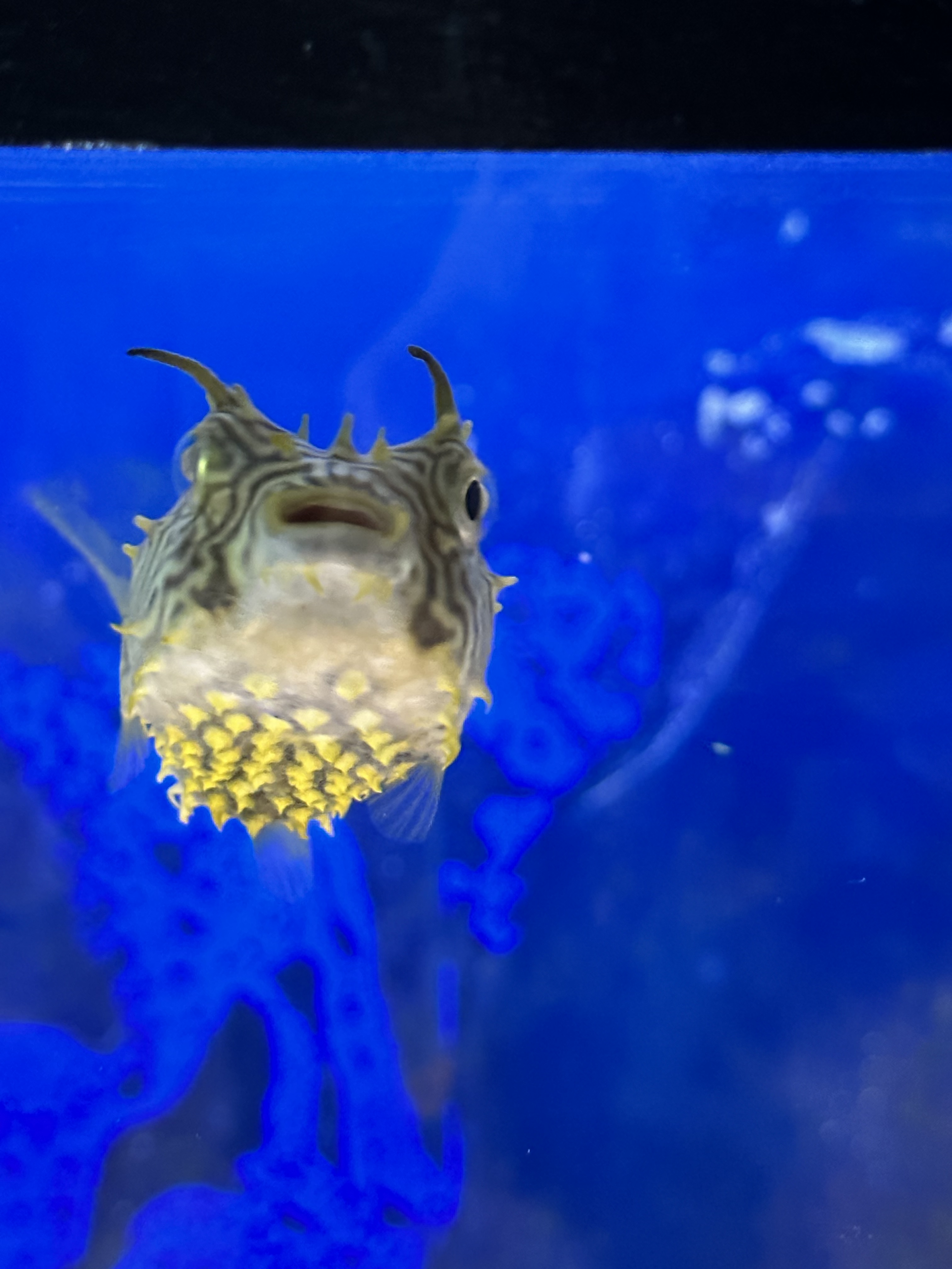 I have been enjoying watching our new spiny puffer burrfish – Raymond Burrfish! He is quite entertaining! I think he knows me now and follows me around as I passed by his tank many times a day to say ‘hello.’