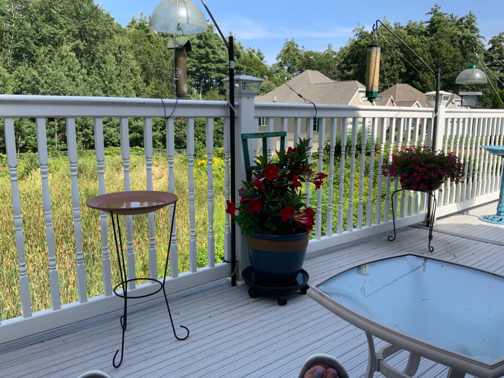 Today is that lazy kind of late summer day for me. I know I should be working on my WIP but I have been at it a few hours every day lately. I think I need a break. Well, here I am sitting out on my back deck enjoying the comfortable weather with almost clear skies and gazing at my Dipladenia plant, that is gorgeous, and the swaying reeds in the pond that is already turning shades of brown. It feels so good to be lazy once in a while. Doesn’t it?
