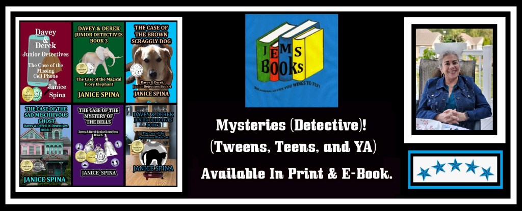 Davey & Derek Junior Detectives Series is a fun and magical series with spells, wands, a black cat, good witches, time travel, ghost hunting and more. There are also life lessons that include being kind, caring and respectful toward others, listening to parents, being helpful and doing chores, and bullying is never tolerated or accepted. Parents love this series too! When your MG/PT/YA read these books, you will rest easy that they are reading good, clean, and wholesome books. What more could you want in a book for your children? Parents are reading and enjoying them too!
