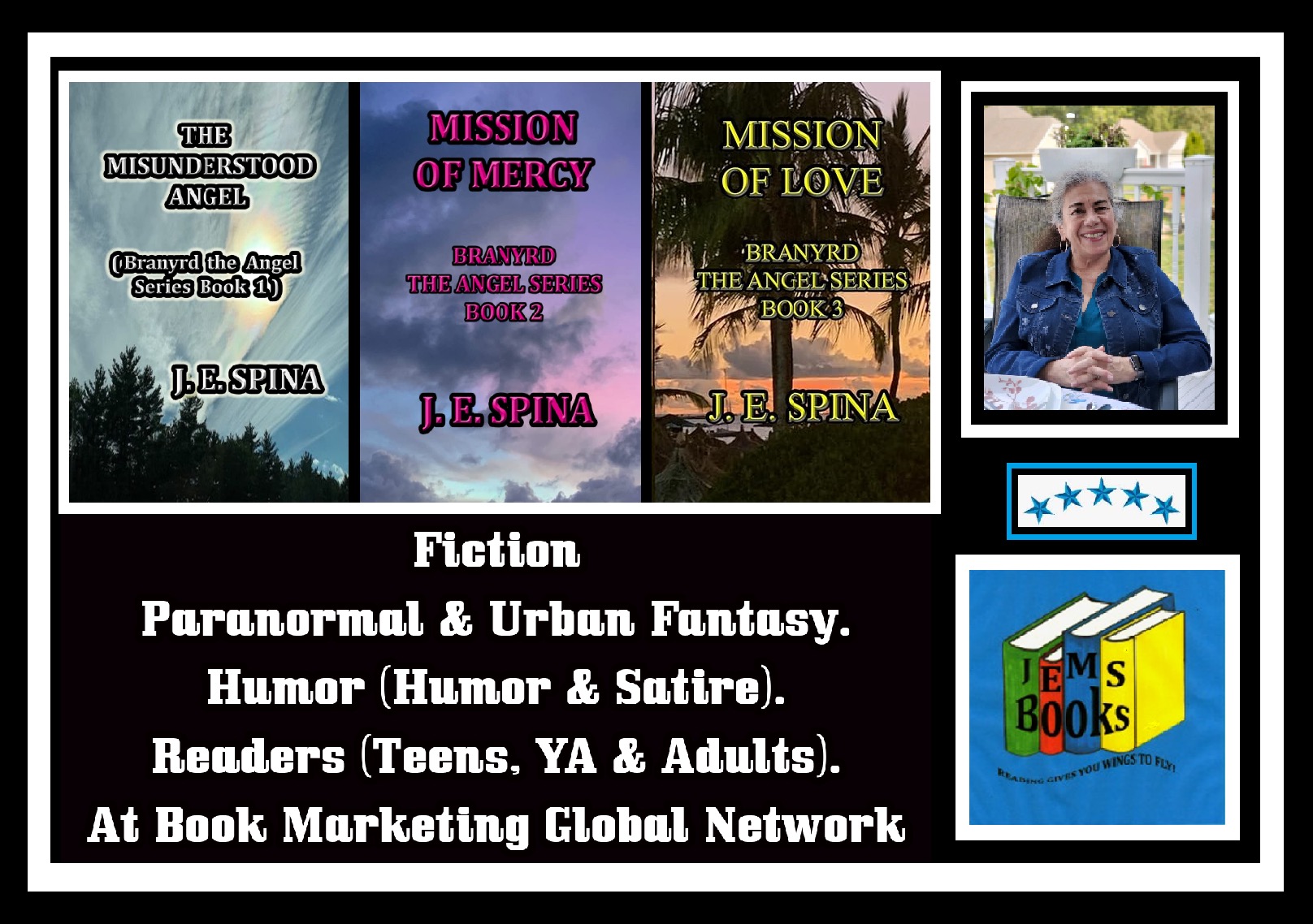 Janice is a multi-award-winning author with 50 books: 23 children's books for PS-Gr 4, 12 middle-grade/preteen, four young adult books, all written by Janice Spina, and nine novels, and two short story collections written by J.E. Spina. She is also a writer of poetry, blogger, avid reader, reviewer, copy editor and supporter of her fellow authors. Janice has always loved writing and started young writing poetry, then stories. Her books have received 50 Book Awards and a few finalists awards, and many 5-star reviews from Readers’ Favorite Book Awards and on Amazon. All Janice's books are available on Amazon.com in paperback, eBook and audiobook formates, B&N and other online book sites. Her hobbies are crocheting, sewing, walking to keep fit, hula hooping, tap dancing, going to dinner with her husband, and spending time with family and friends. Janice loves to hear from readers and appreciates reviews. Sign up on her blog http://jemsbooks.blog for updates of her books. She lives in New Hampshire with her husband who is her illustrator and cover creator and two tanks of fish.