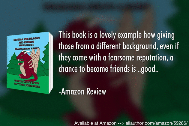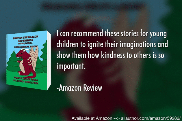 Today I am showcasing the final book in this series, Drystan the Dragon and Friends Series Book 6: Dragana Helps a Fairy. I think children will love seeing this dragon in a story with a fairy and will learn how important it is to be kind to others in need. Parents will be pleased to find that my dragons are never scary for young children. There are enough frightening things in this world without more in children’s books.