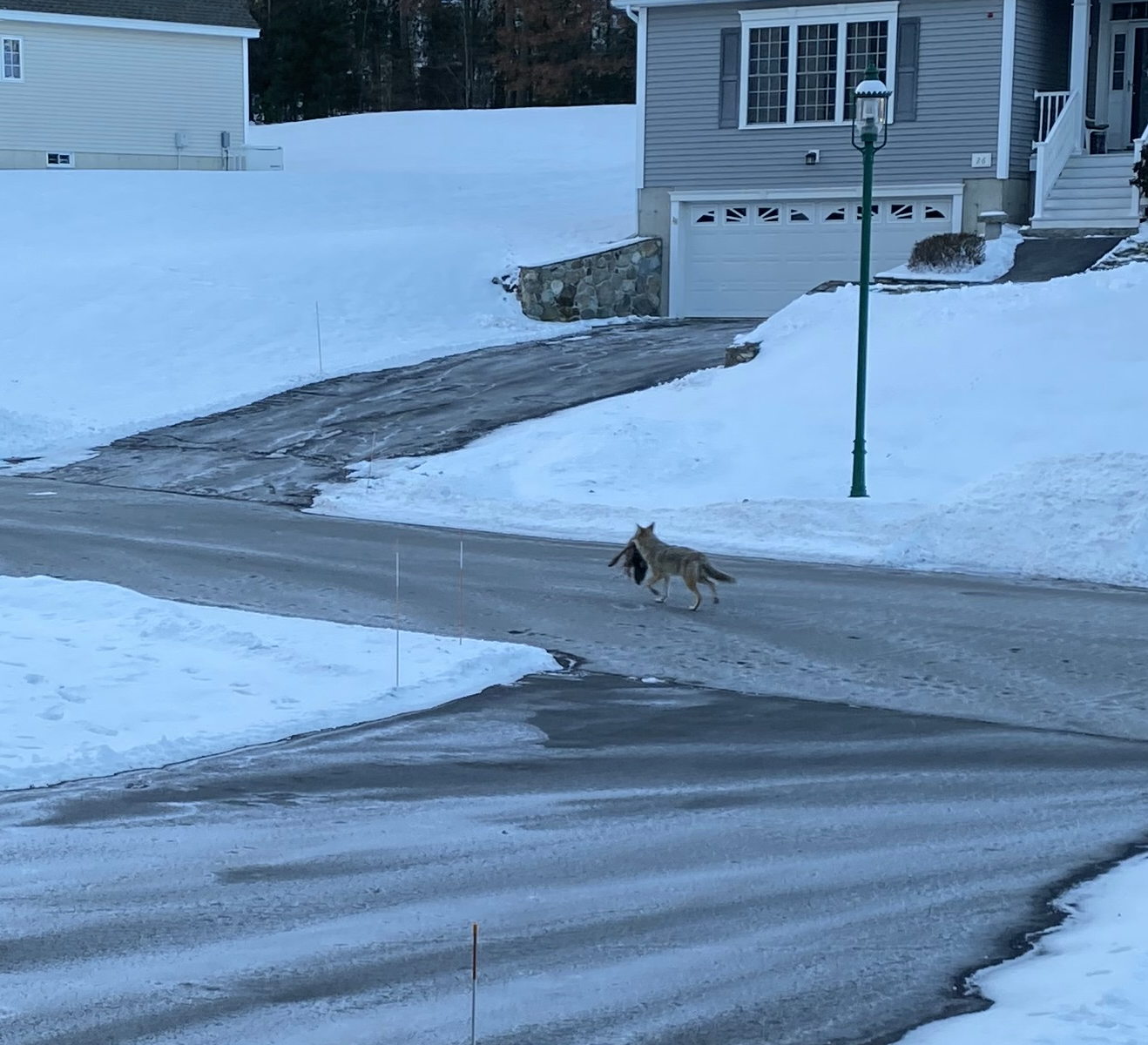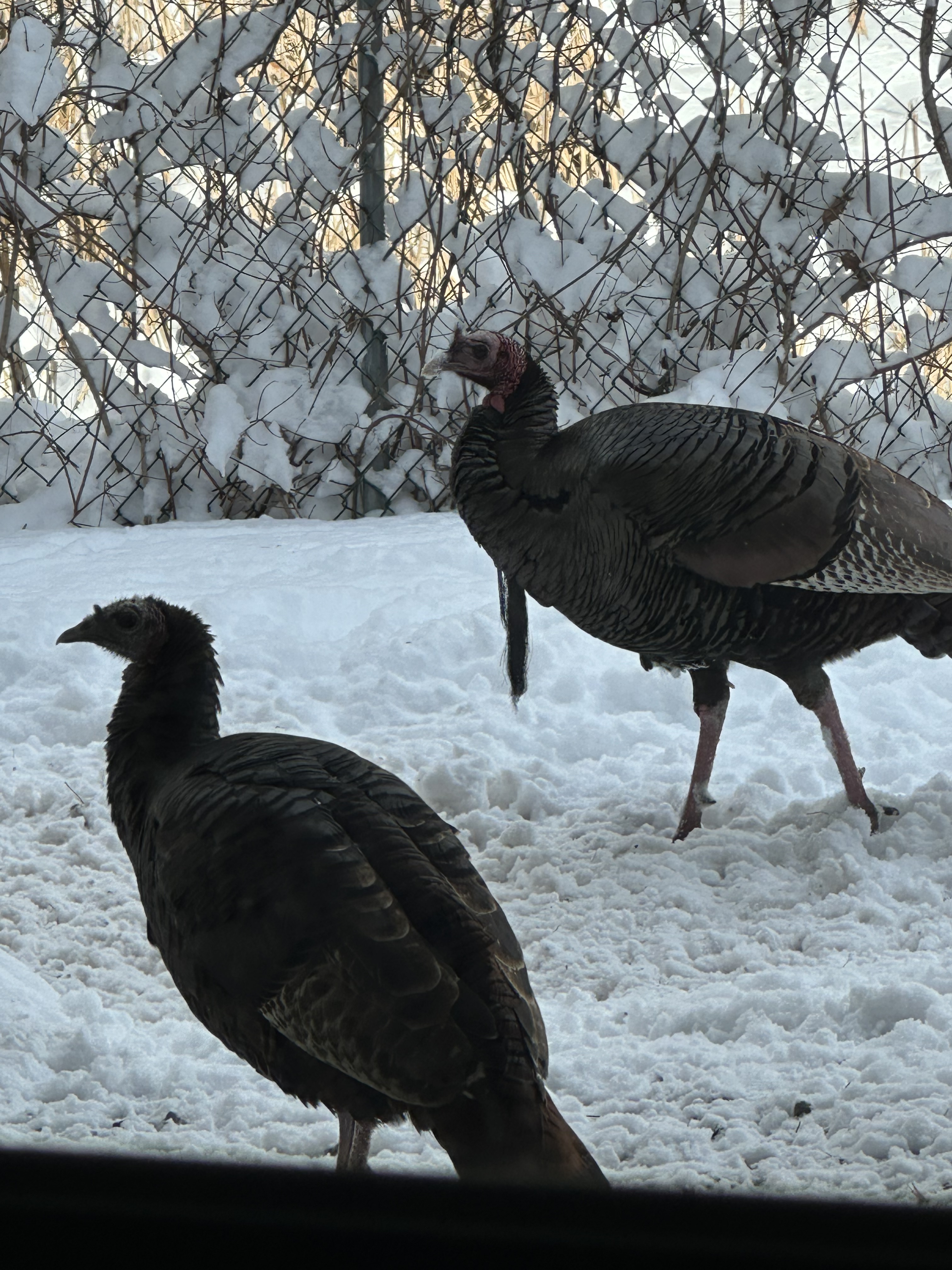 I guess the turkeys will be culled by coyotes. No worries about them procreating after all. These photos were taken by a neighbor early in the morning.