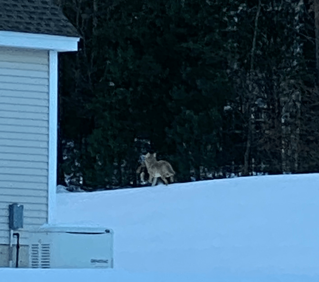 Sometimes I forget that we are living in a country setting with all the animals that are around us. We have seen two coyotes chasing a deer. Hopefully the deer got away but I doubt it because a second coyote joined the first. They disappeared into the woods so I can’t say what happened. I’d like to think that the deer escaped unscathed.