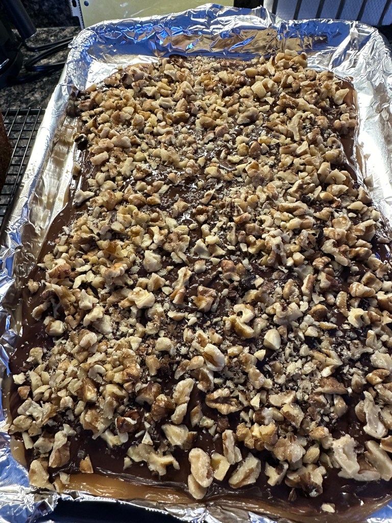 I wrote a poem for him and also baked a banana bread and made, for the first time, Dark Chocolate Butter Crunch, a recipe from a neighbor. My husband loves both of these, so he is a happy hubby today. Lucky for him that I love to bake. I spent most of the day in the kitchen and am just sitting down now to share this with my readers. Here are the efforts of my baking and my gorgeous flowers.