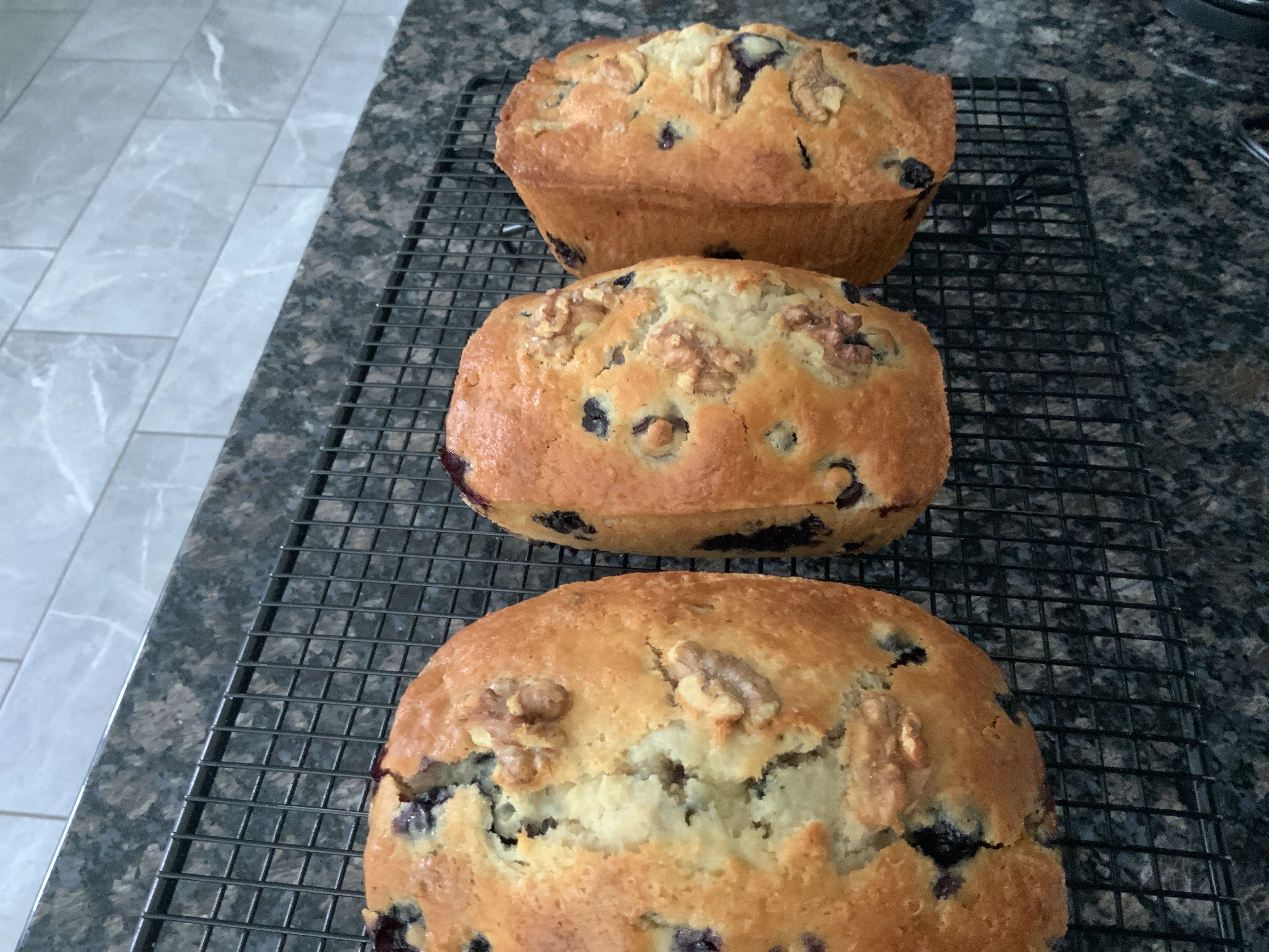 Today I made blueberry bread to share with another neighbor, my BFF, who is sick. Please keep her in mind when you say prayers. The more prayers she receives the better. Thank you so much!