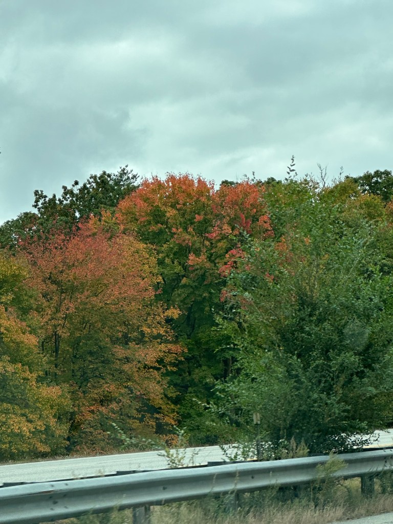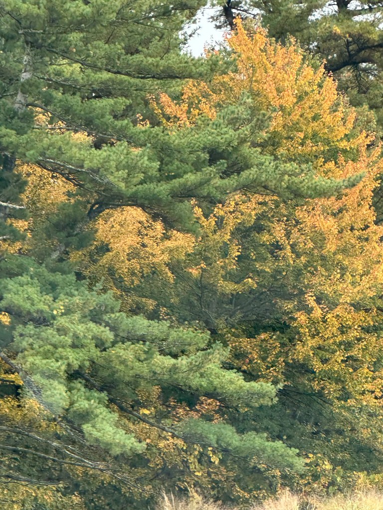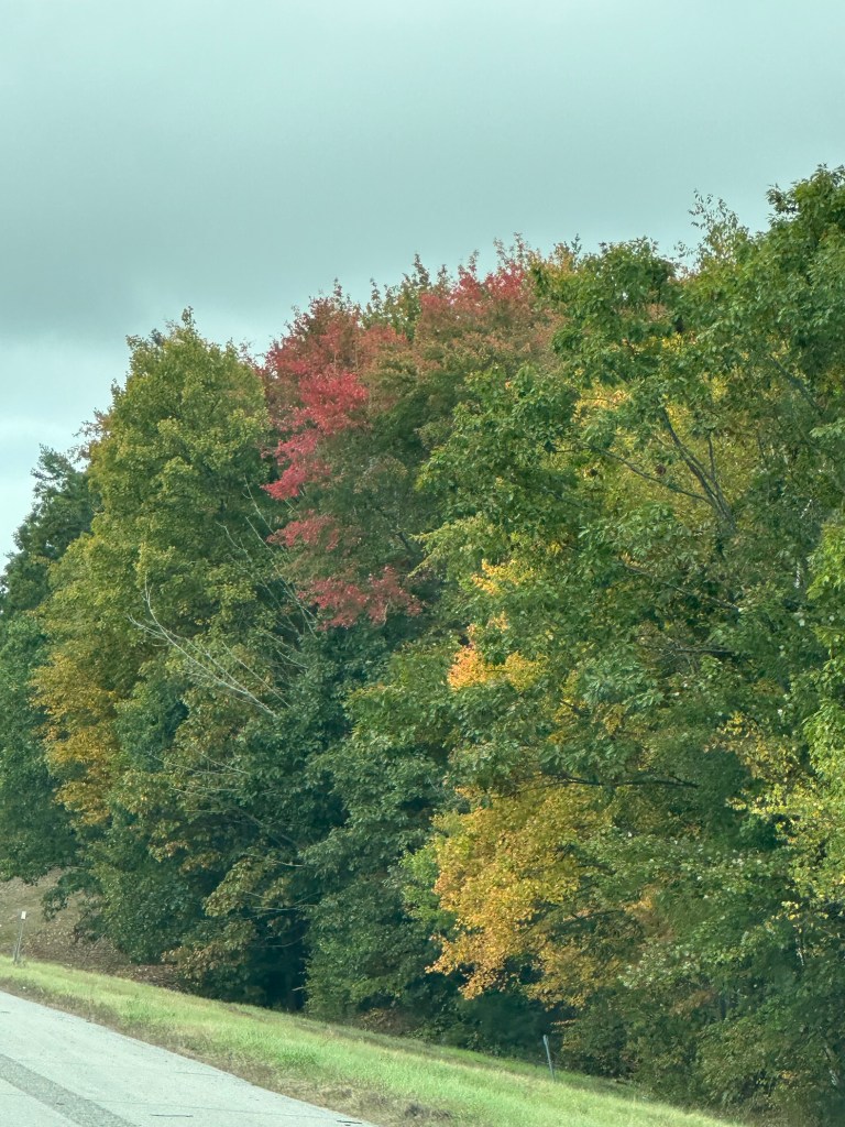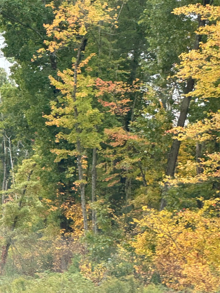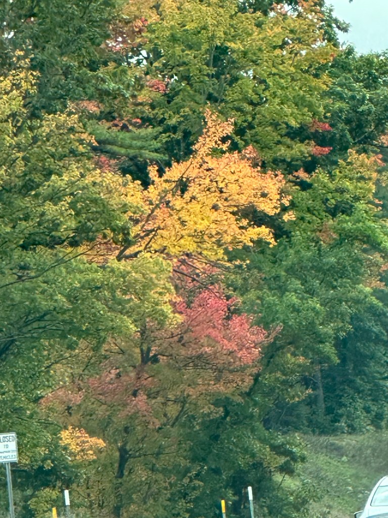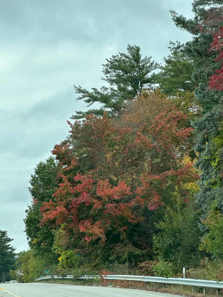 I snapped some photos of the beautiful fall colors that I noticed along our way to Maine recently. Also, our pumpkin is being attacked by rabbits, deer, squirrels, chipmunks or groundhogs in our area. I haven’t seen who the culprits are though. This happens every year. I really don’t mind providing some nourishing food for these animals.