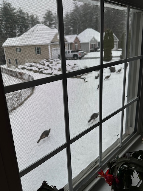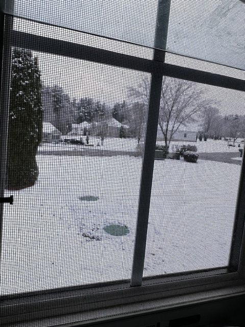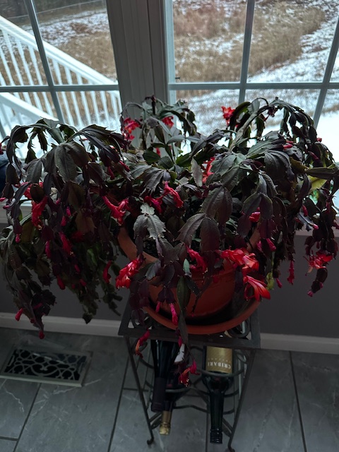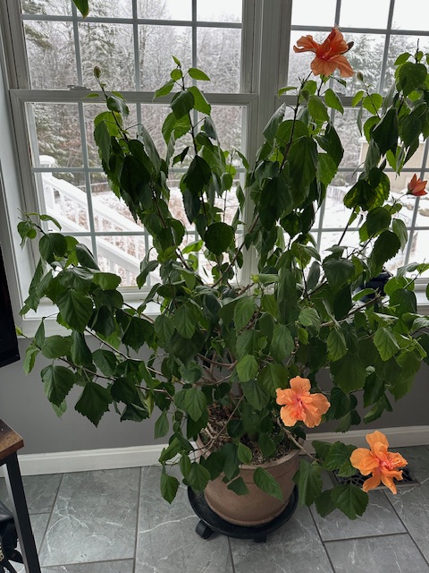 As long as I don’t have to drive in it, I am happy to watch it fall. I shared some photos as always of the snow from different windows in my home. I also included my hibiscus and Christmas cactuses that are flowering beautifully and keeping a spring-like feel to my home in spite of the snow outside.