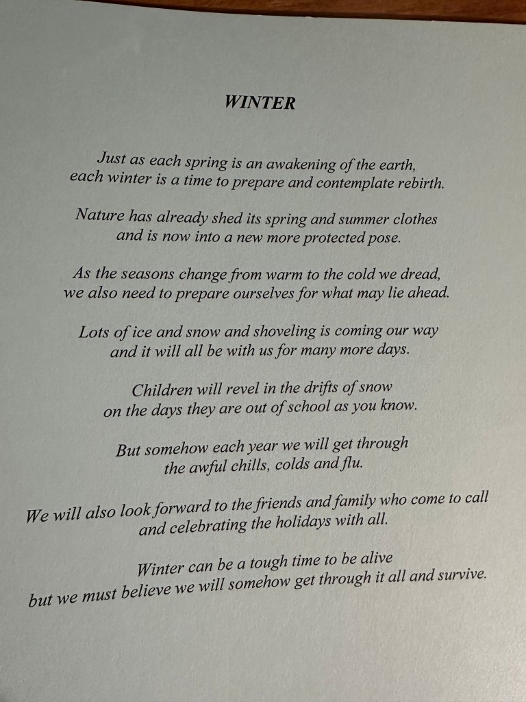 A lovely poem, Janice, and your snow pictures are gorgeous.