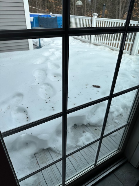 Robins are here a little early, but they are eating at our feeders until the snow melts and reveals the worms on the ground that are coming out.