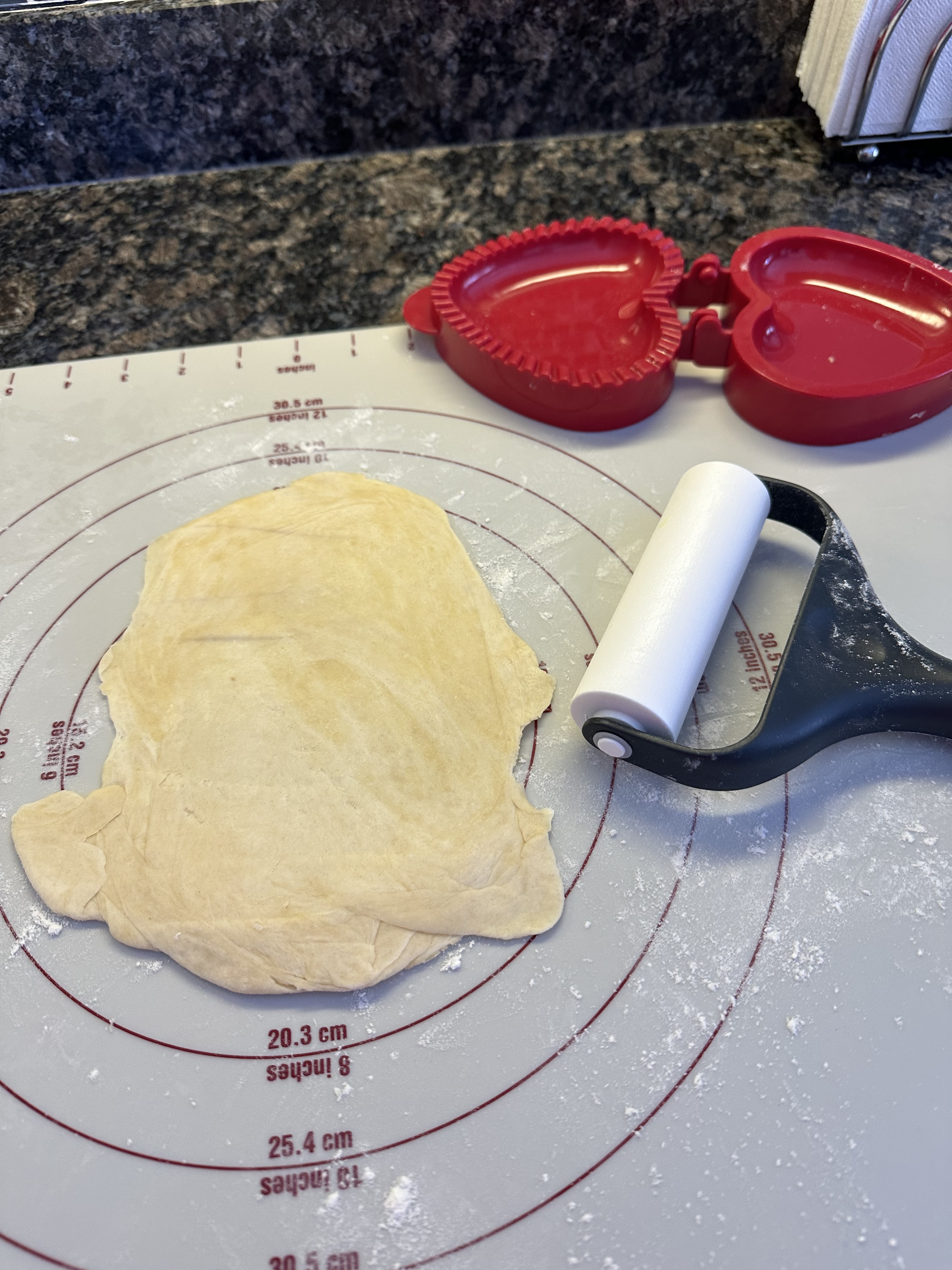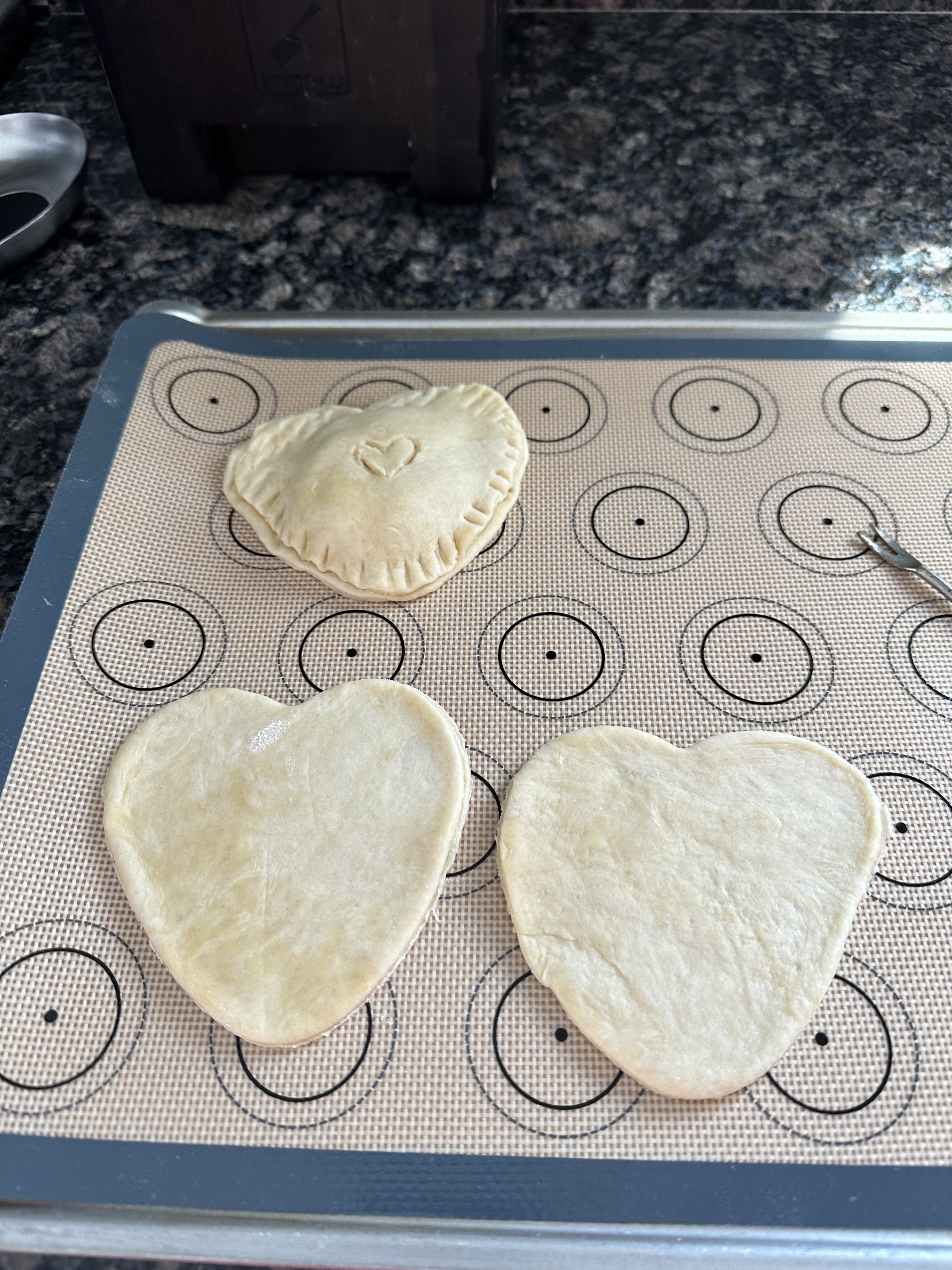 I made these for Valentine’s Day using my heart mold. I have three different size turnover molds, and also the heart and a star mold.