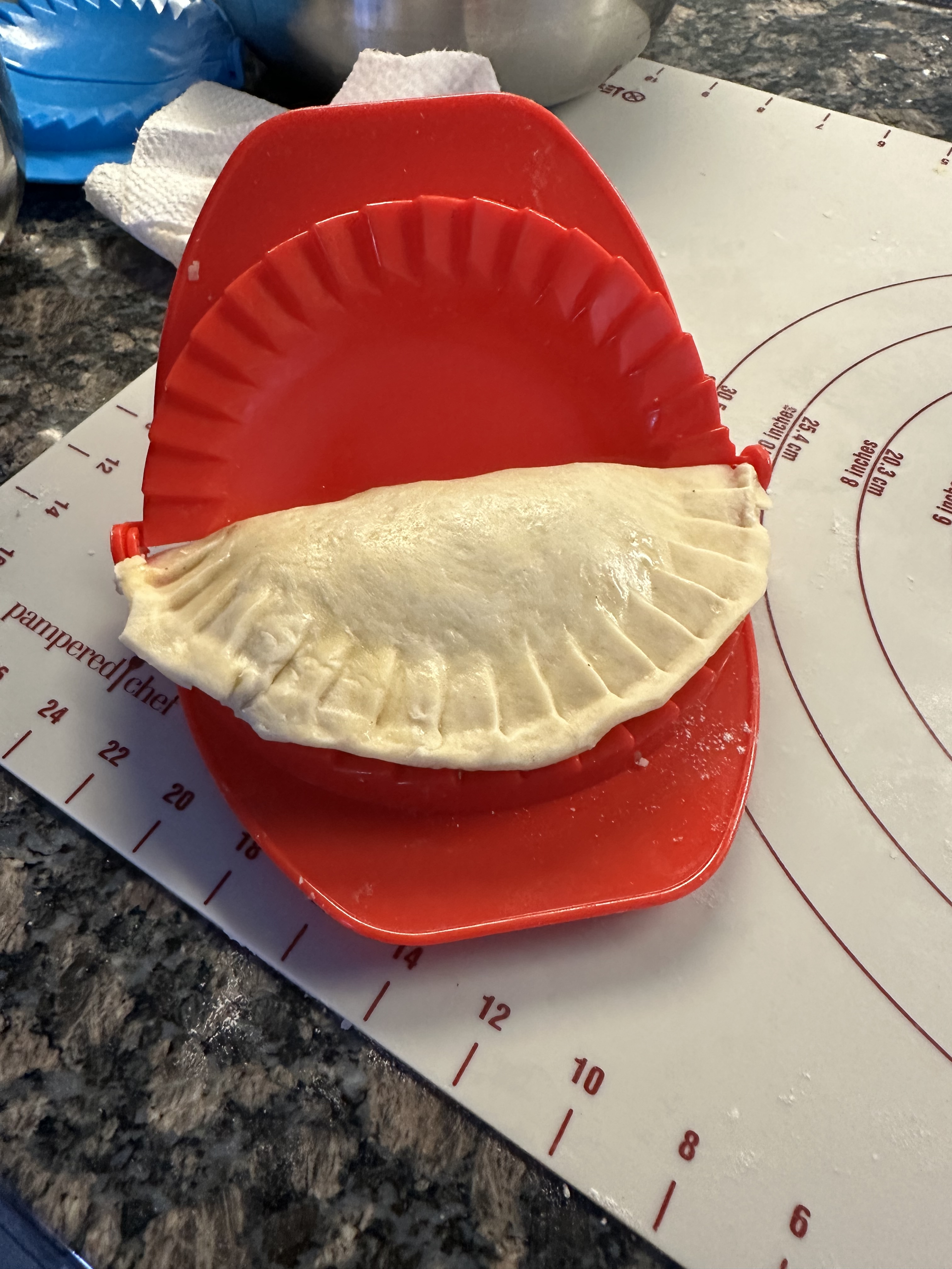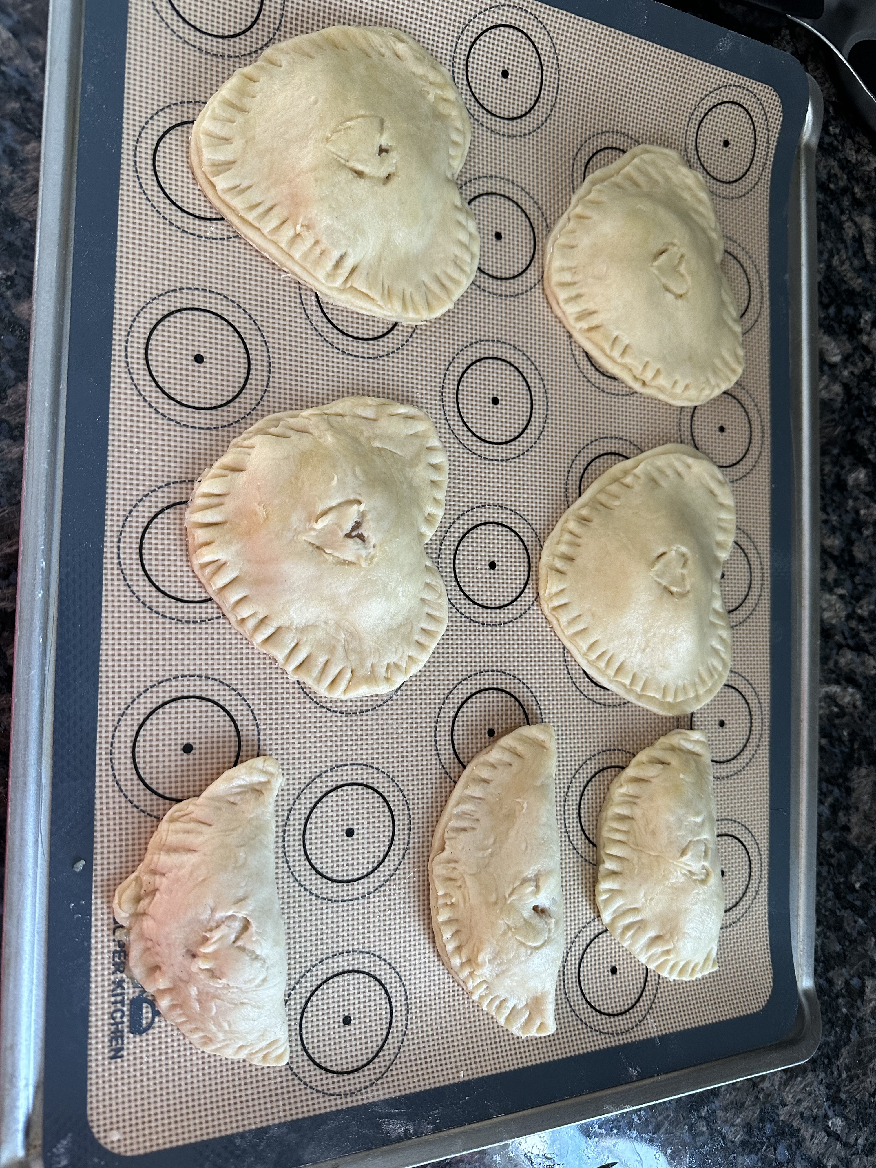 The apple came out better since it had more moisture than the preserves did after baking. These molds can be used to make empanadas with meat and cheese or whatever you want to include.