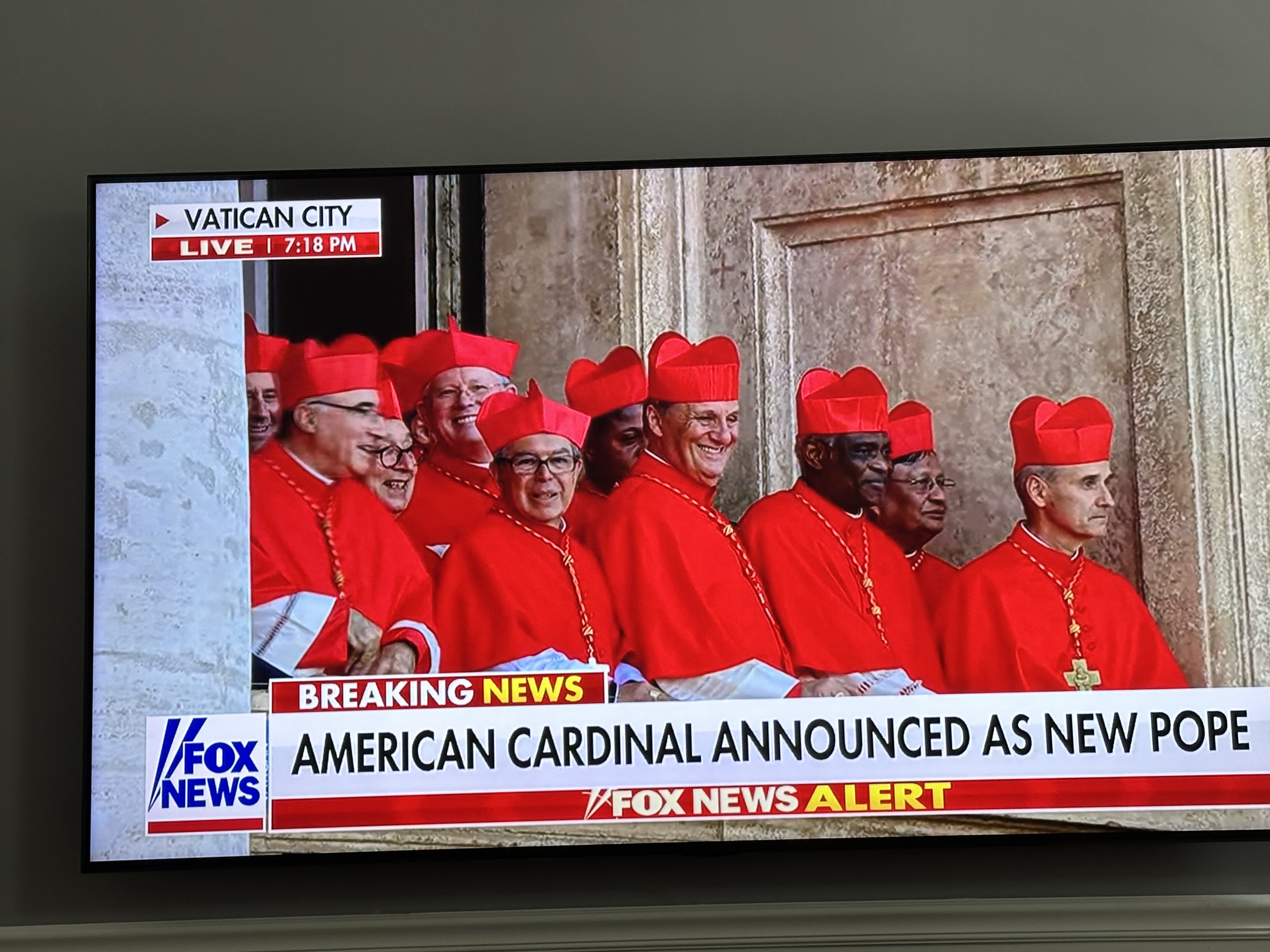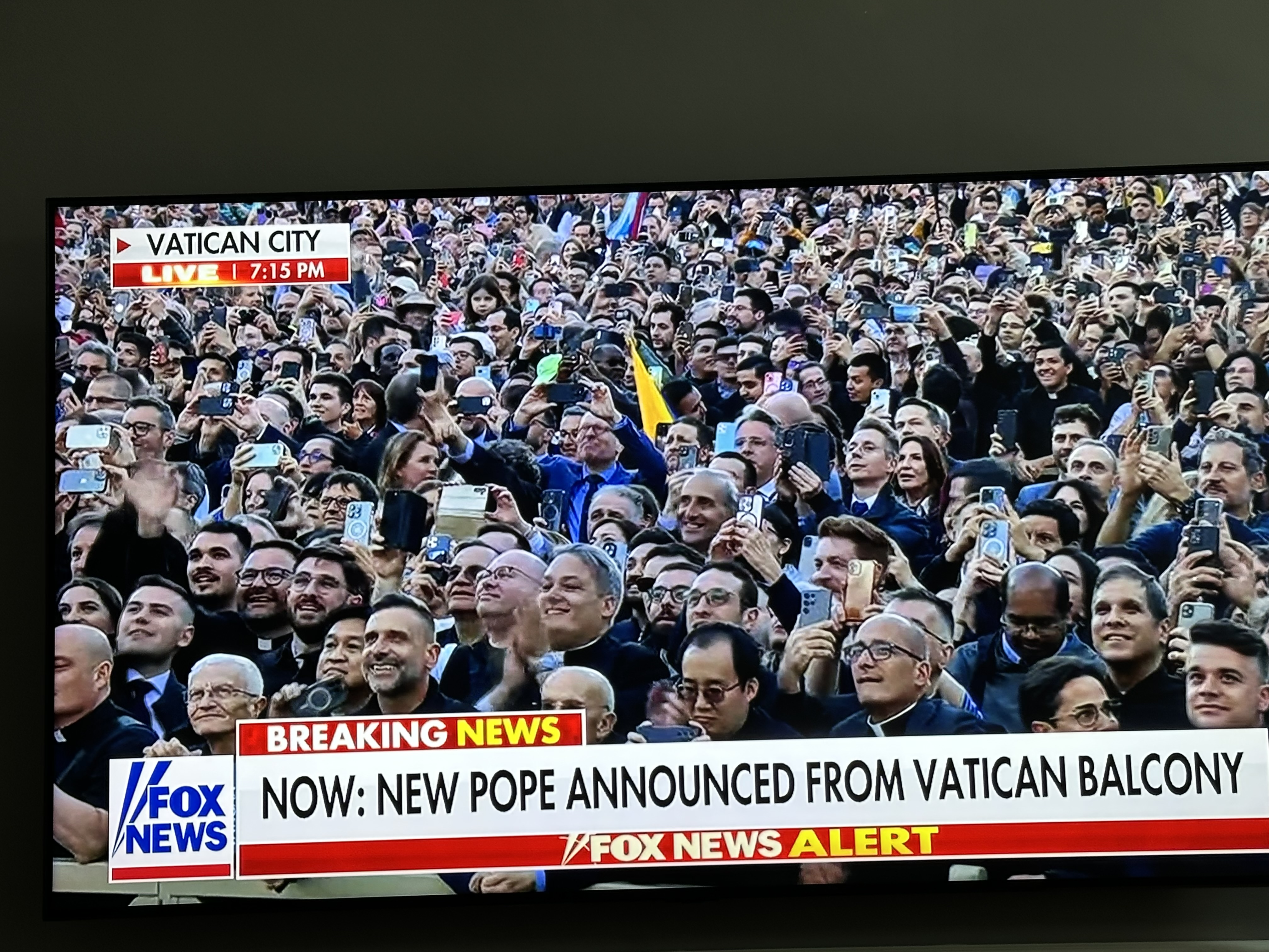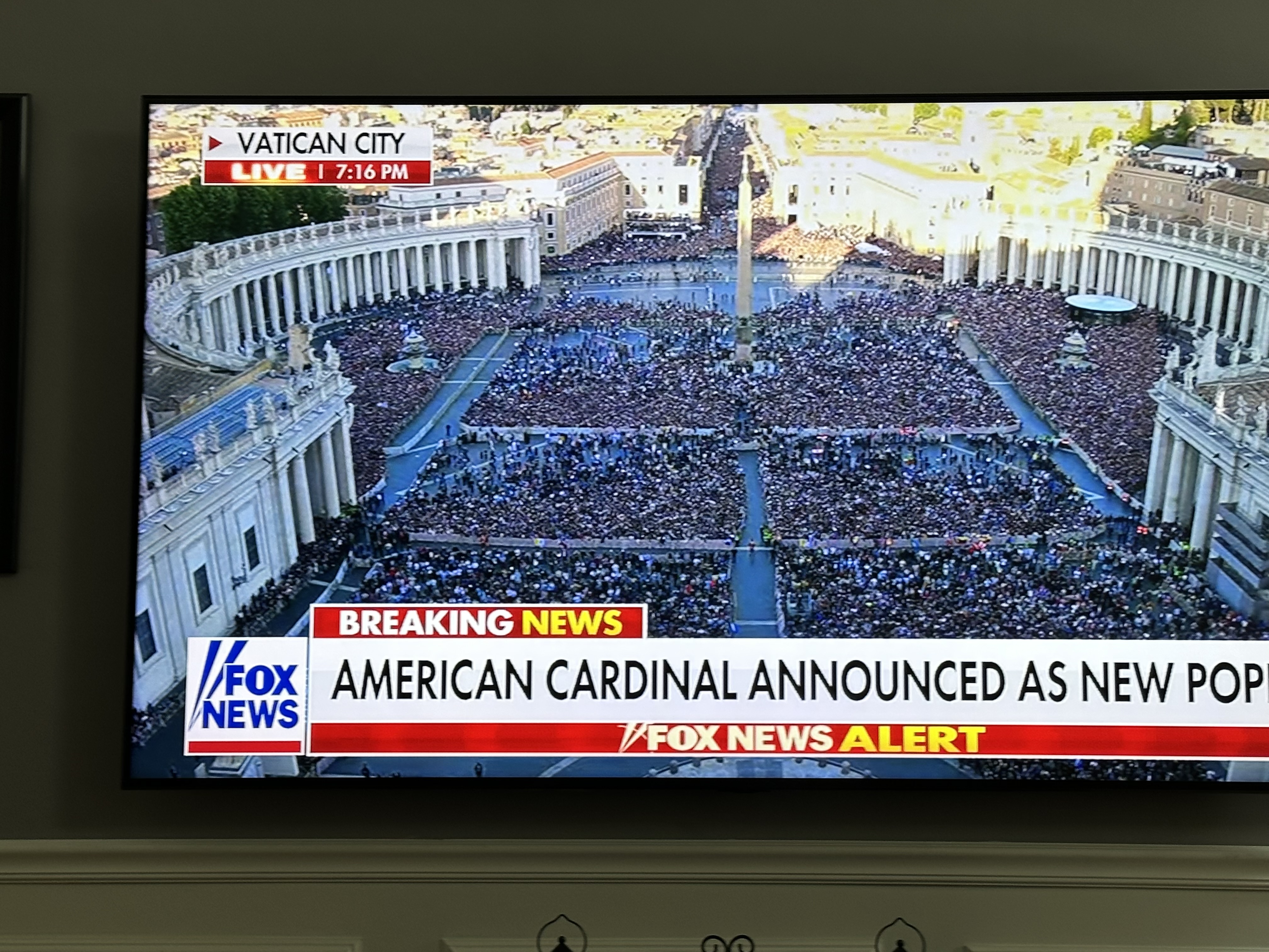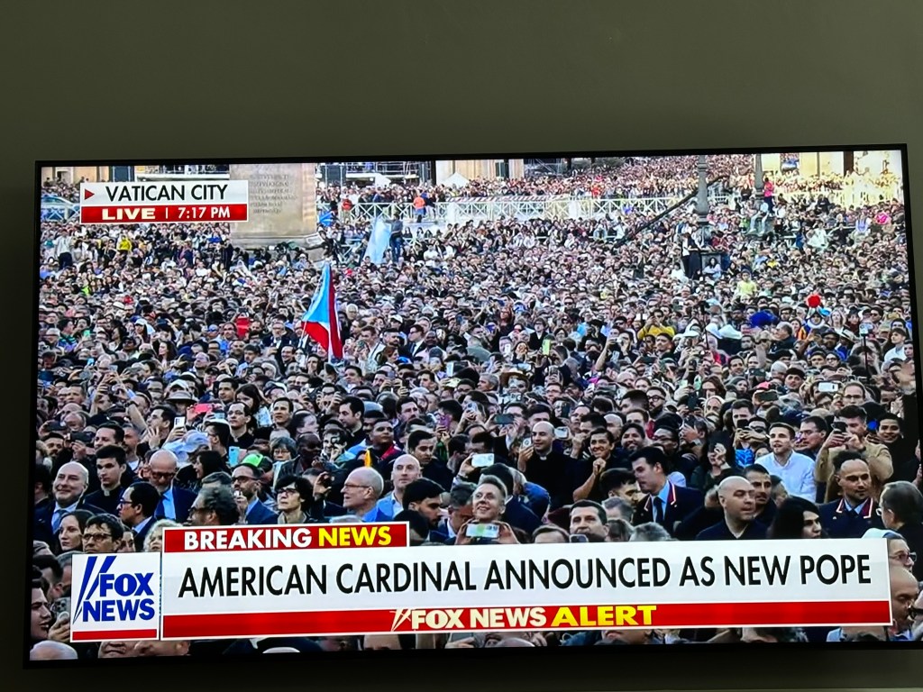 What a blessed day this is today, 5/8/25! We now have a new pope! Watching this celebration of our pontiff I was emotionally moved by the crowd and how much they acted as one! That is what we are – ONE! What a surprise when the cardinals chose an American pontiff for the first time!