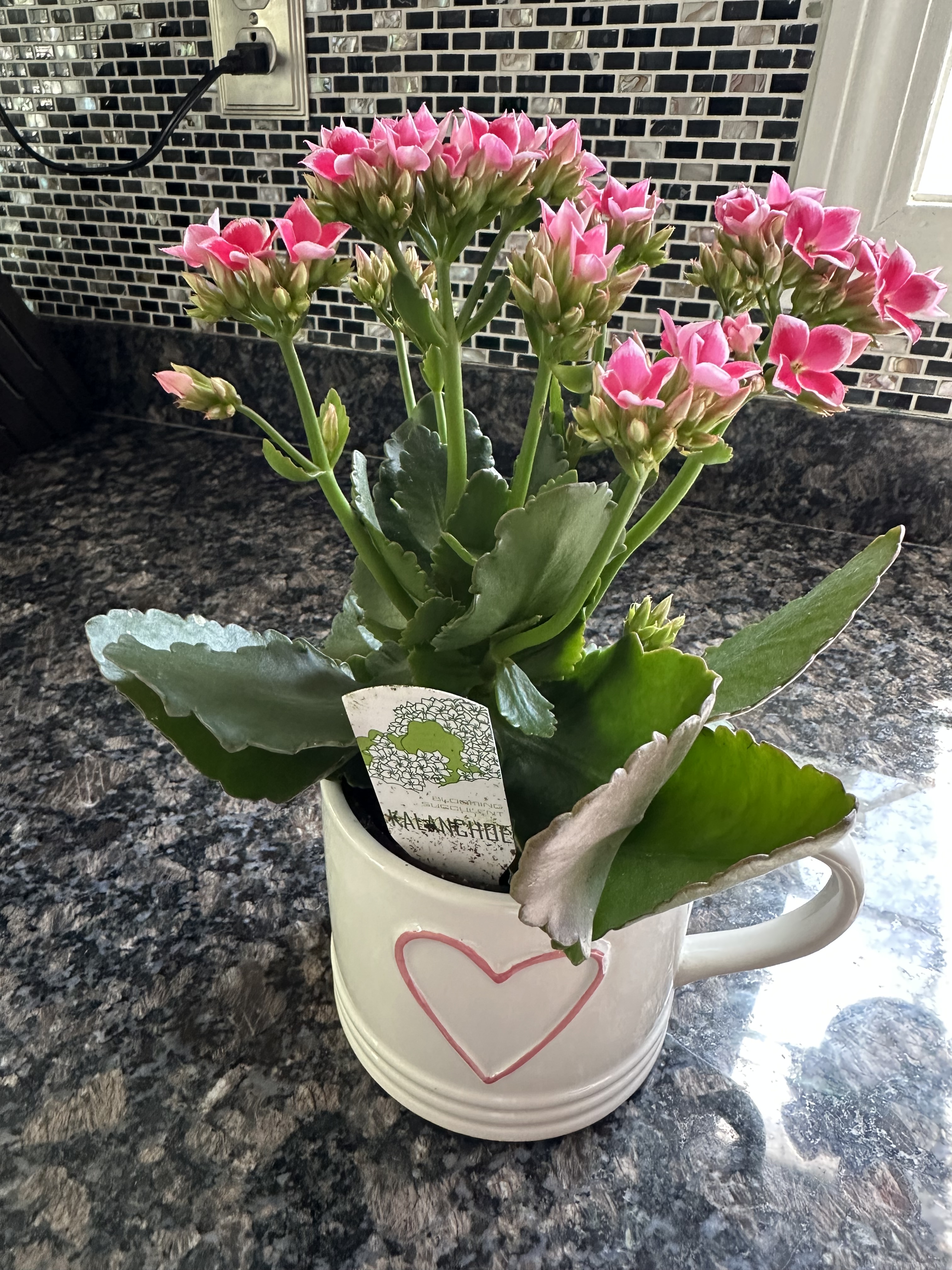 Sickness kept us apart on Mother’s Day but I am feeling better and so is my daughter-in-law. We usually go to a brunch at Flag Hill Winery with my son and family. We hope to make it another time. My daughter and granddaughter did stop by the day before Mother’s Day even when I was still not well to deliver the plant. It was nice to see them but I hope I didn’t give them my cold.