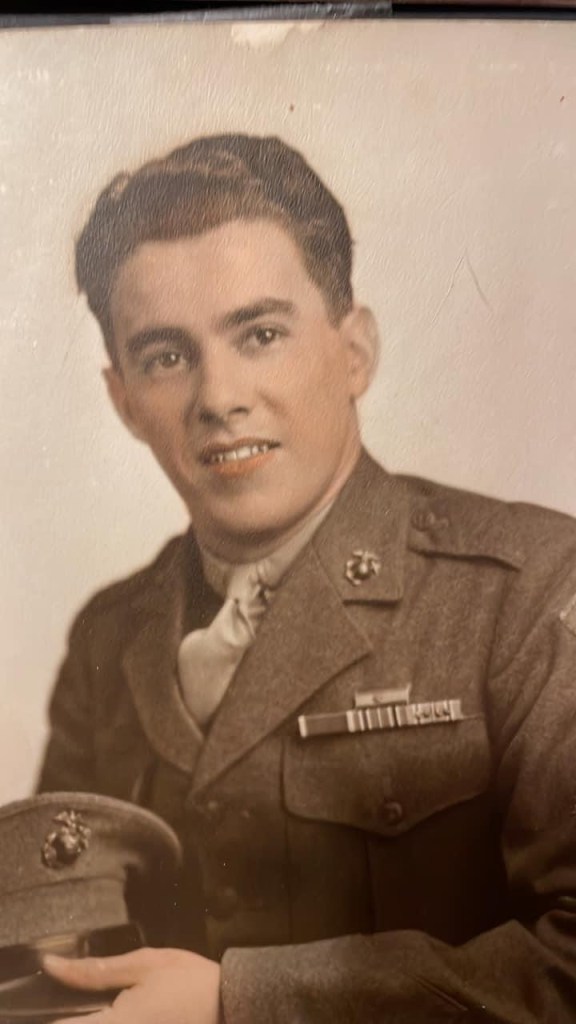 Here’s my handsome dad in his Marine uniform above and below proudly marching. I couldn’t edit this photo below for clarity, reason why it is so blurry! I had a studio work on it several years ago but this is the best they could do. I loved that smile! He was a wonderful man and father. He was larger than life in my eyes! He was kind, caring and funny. If I don’t stop talking about him I will be crying all day. Thanks for listening.