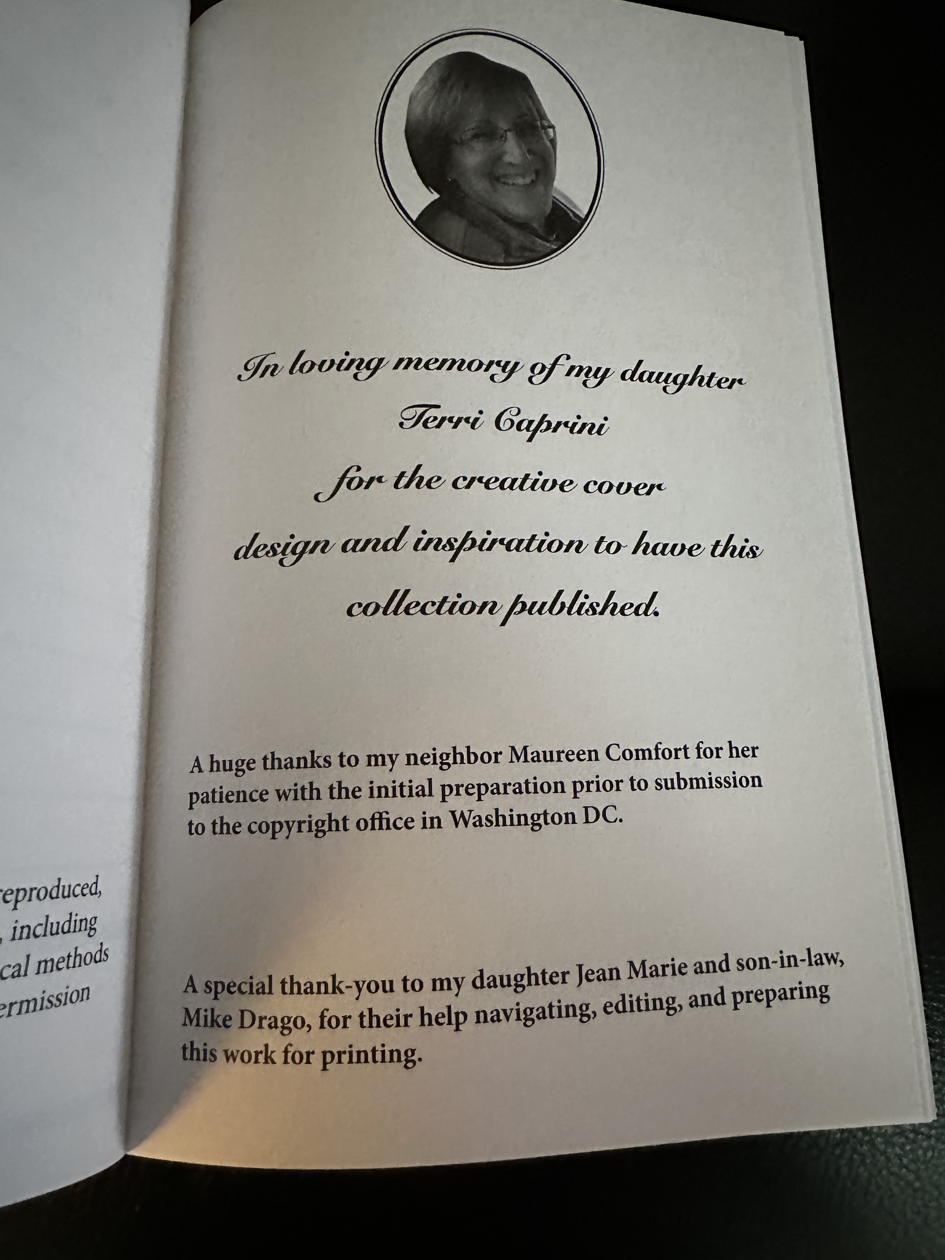 If you are interested in obtaining a copy of this beautiful collection, you can contact Robert A. Scolly at scollyr@gmail.com. I hope you will contact Bob for your copy soon. The price of the book is $15.00 plus S&H.