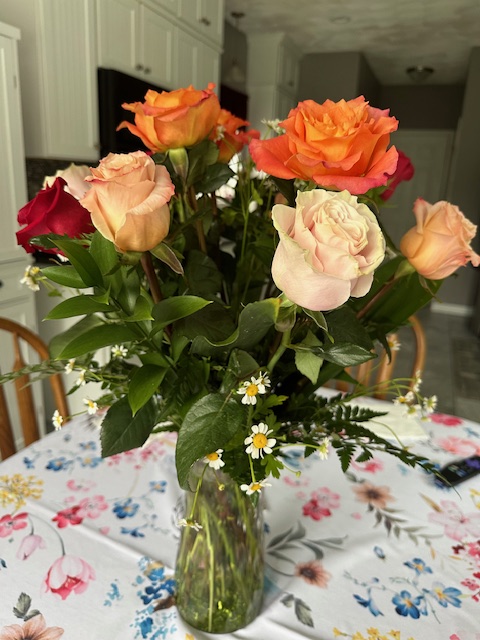 Here are some flowers from our past anniversaries. At this writing, I haven’t received the roses. I will share them at the end later. I hope these flowers cheer you up. I love flowers, all kinds, but especially roses. We have roses in our area, a few bushes that I have already shared with you.