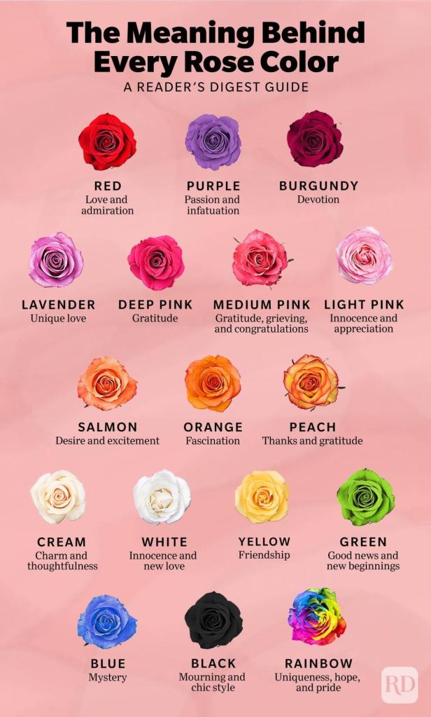 I loved the mixed colors of roses on a few occasions but the red is especially significant of love. Here are the meanings of each rose for you to enjoy. https://www.bloomandwild.com/the-blog/the-meaning-of-roses