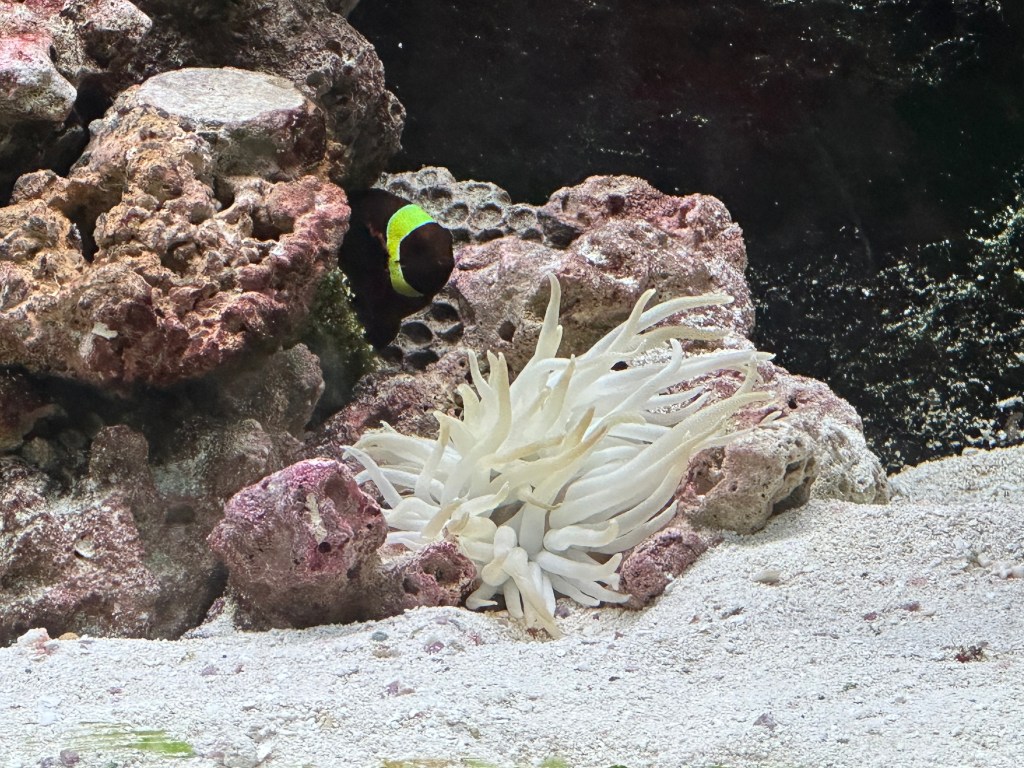 It was getting cozy with the anemone as shown in the photo above. It probably died after it moved itself next to the anemone. The anemone couldn’t have moved it nor could the Clown fish. Sad to say but the anemone was happy. Sigh!