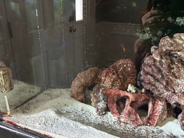 I want to introduce the newest additions to our saltwater fish tank. Introducing –