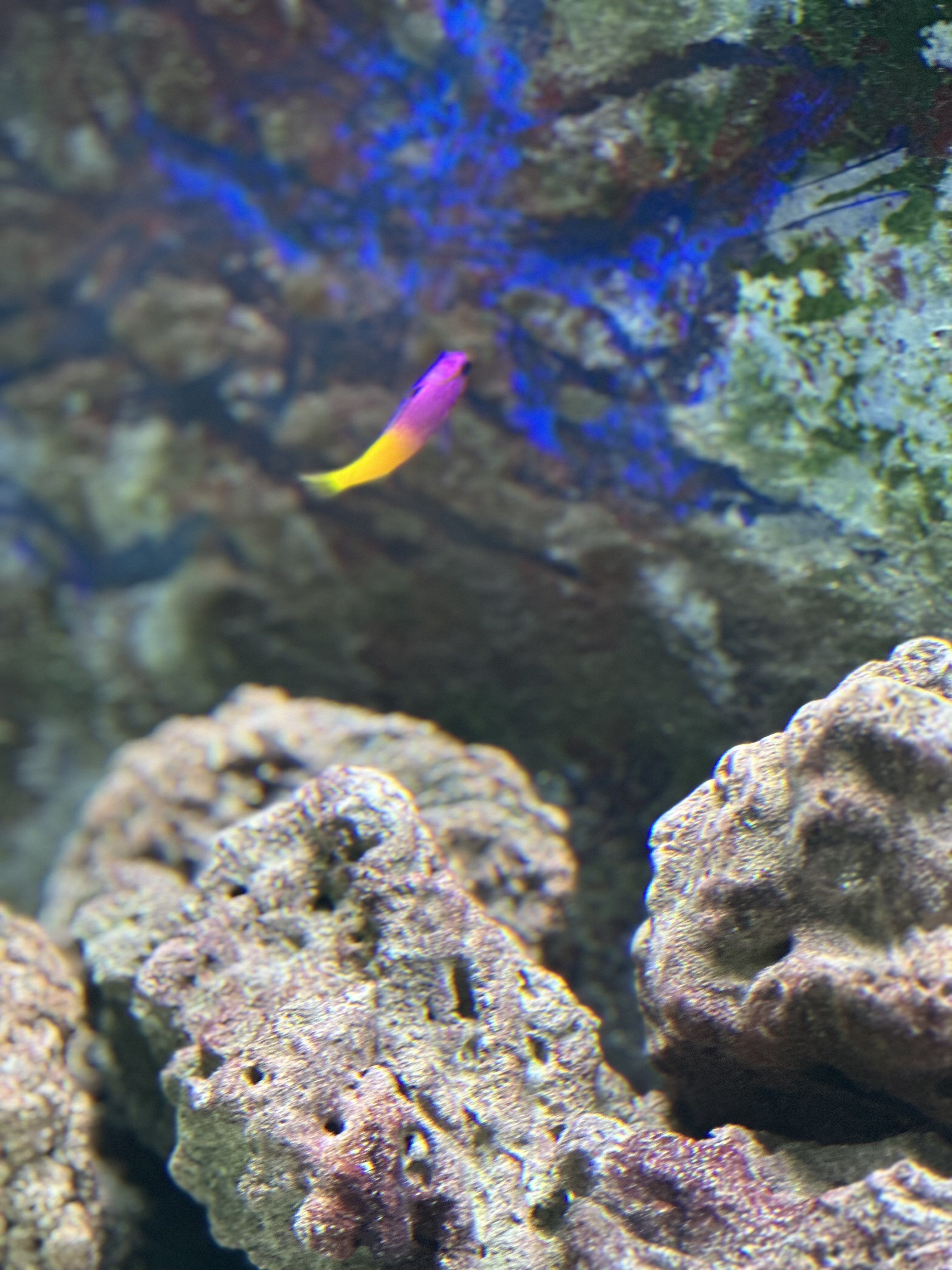 We did lose one of the previous additions – a Powder Blue Tang. It was so beautiful but it died after a fright. It was not used to having a light on in the tank. When my husband put on the light to feed them one day it got frightened and flew up and down hitting against a rock and passed away shortly thereafter. So sad.