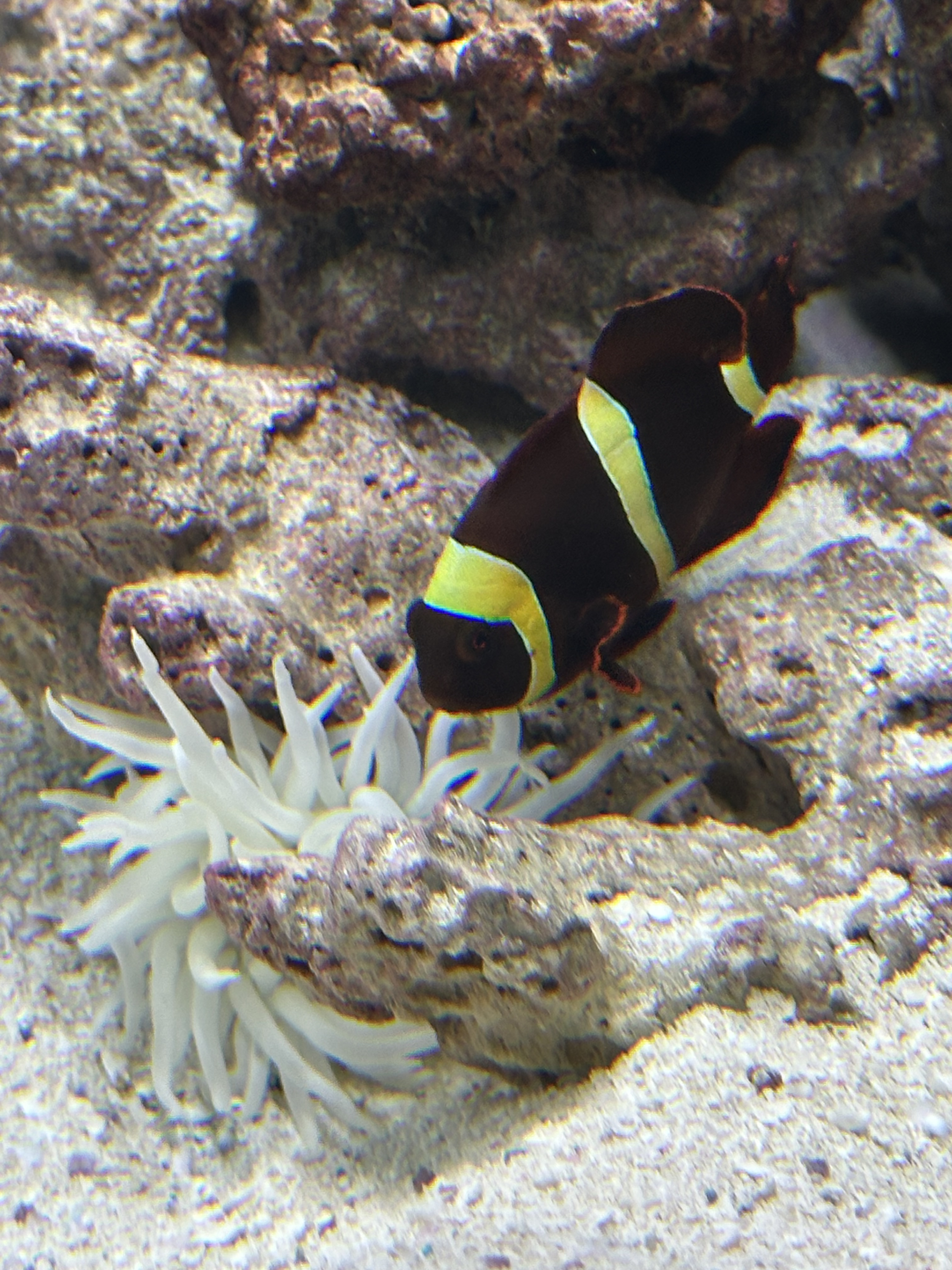 Bicolor Angel and Clown are getting friendly lately as you can see in above photo. They swam side by side. It could be because Clown was keeping an eye on Angel because it was getting too close to his precious Anemone. Haha!